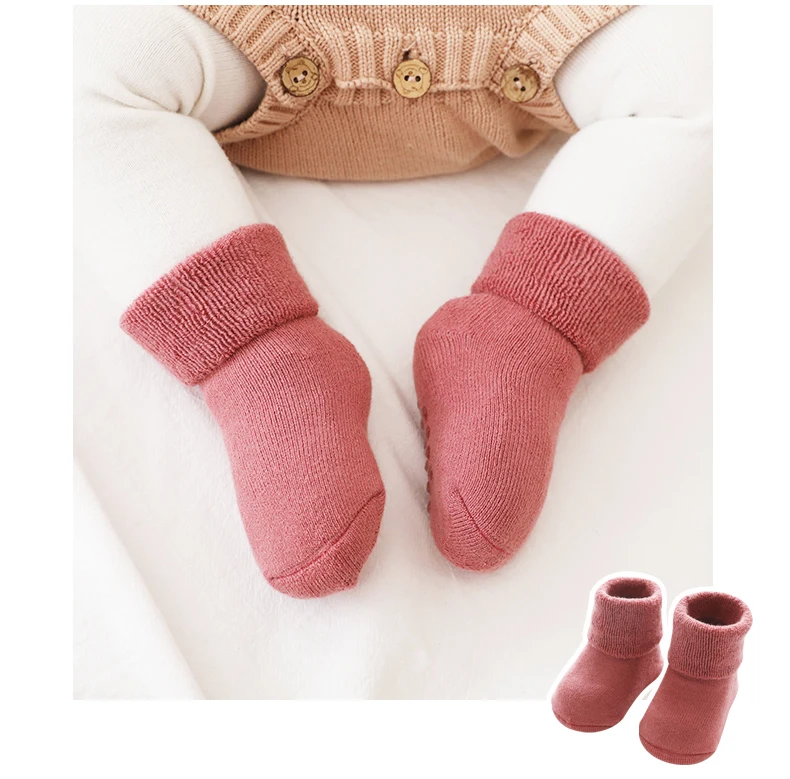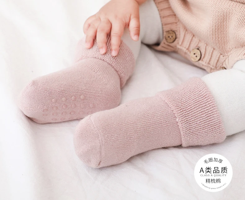 3 парыЛот, зимние носки для новорожденных, резиновые хлопковые теплые носки, детские Нескользящие домашние тапочки, Комплект детских носков, толстые махровые носки для малышей