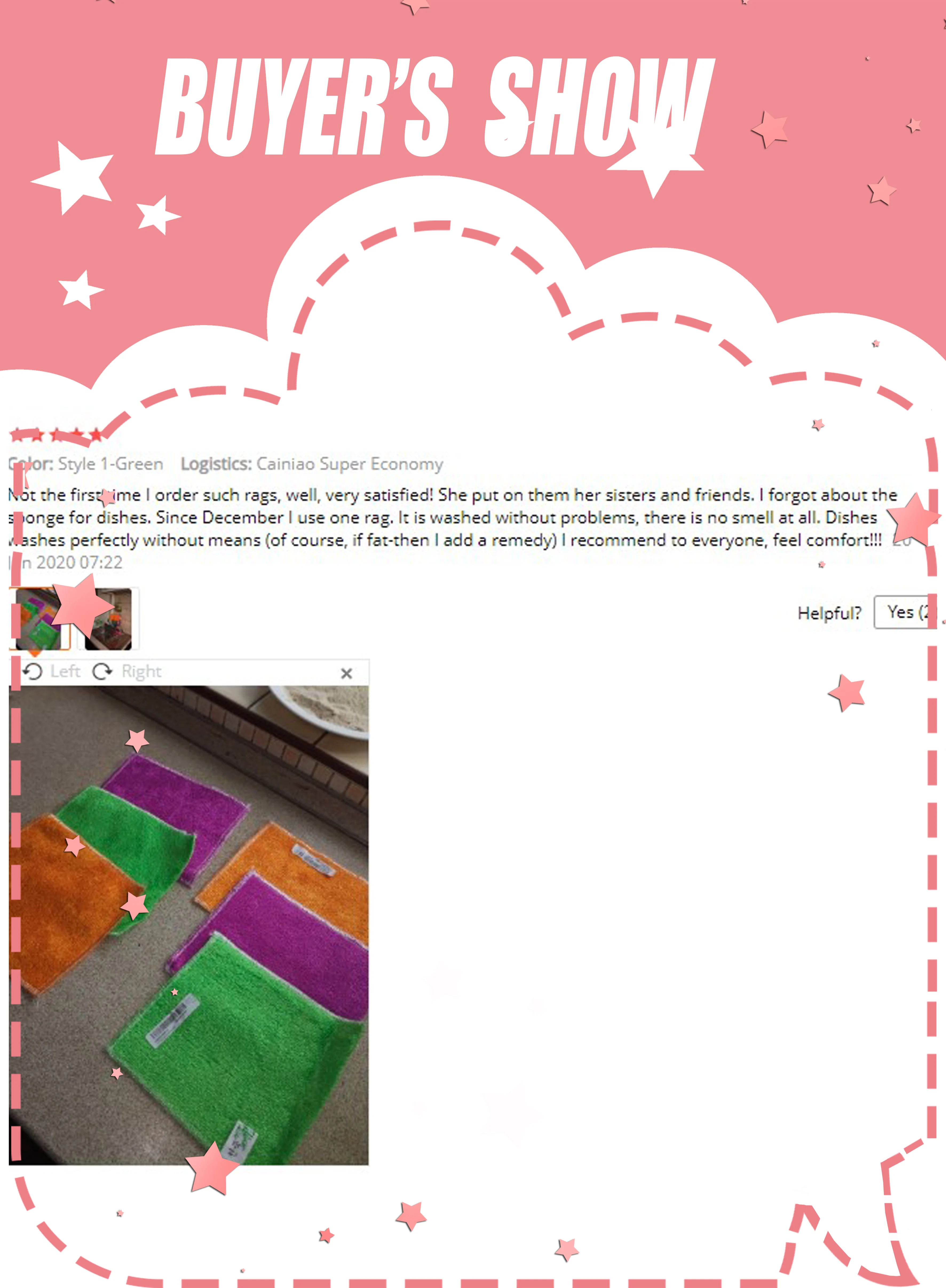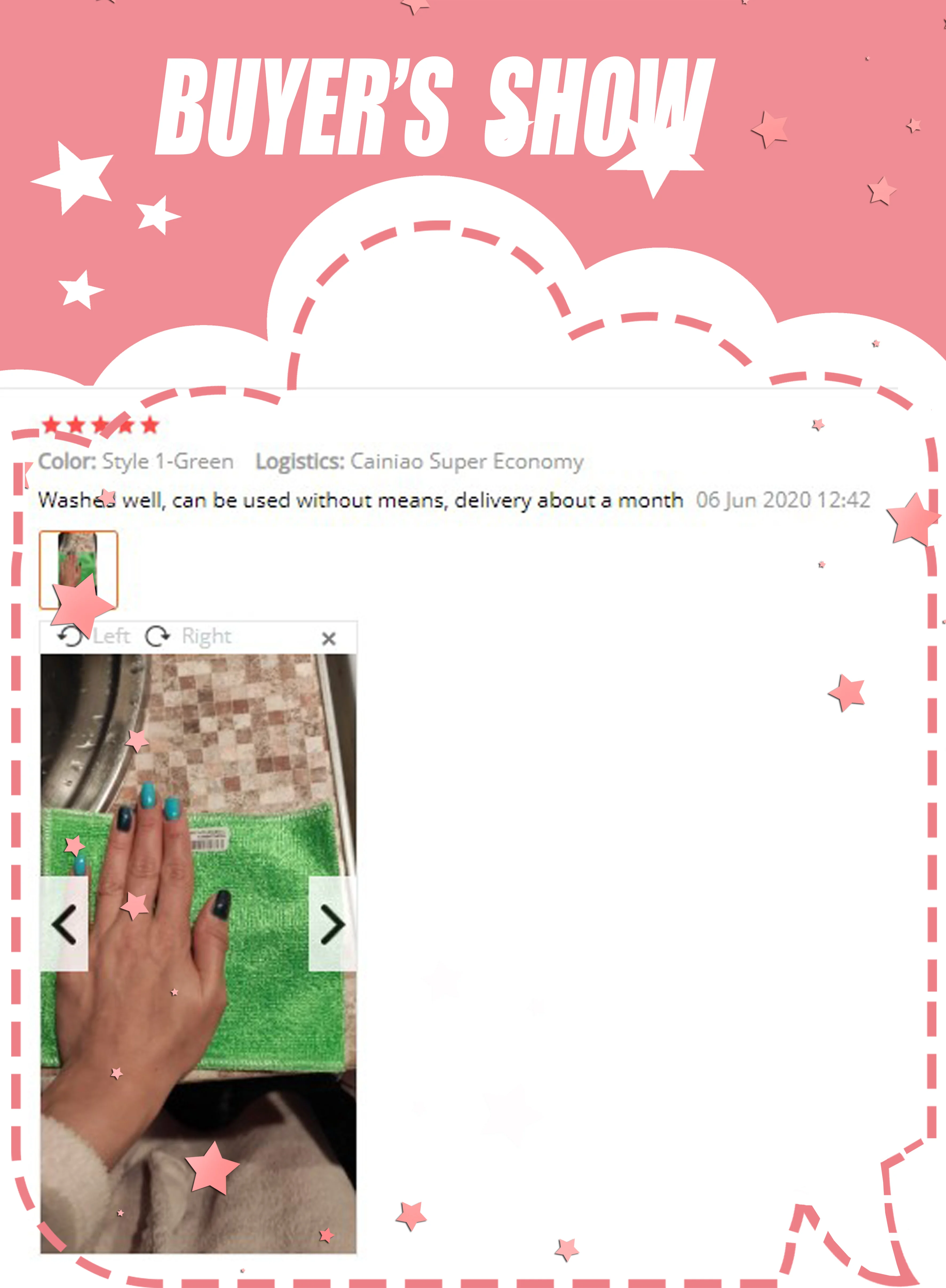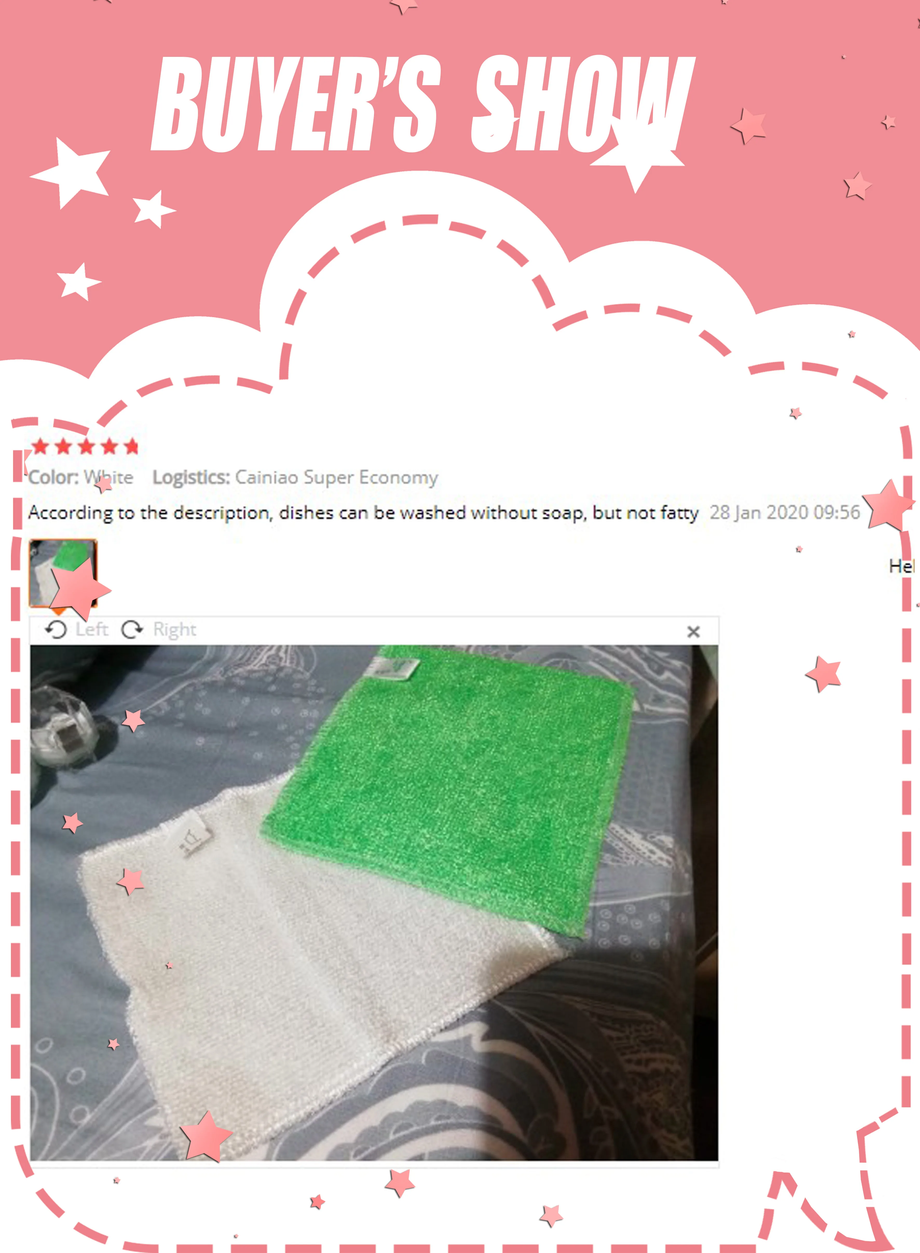 Товар до СПб шёл 20 дней. Заказала две тряпочки. Опробовала в деле ковш вымыла после каши. Все чисто ковш и тряпочка, а вот жирную посуду без средств не отмыла. Буду стол ей протереть. Продавца советую, а товар не знаю, я наверно чудо ждала, что посуду мыть буду без Фери.