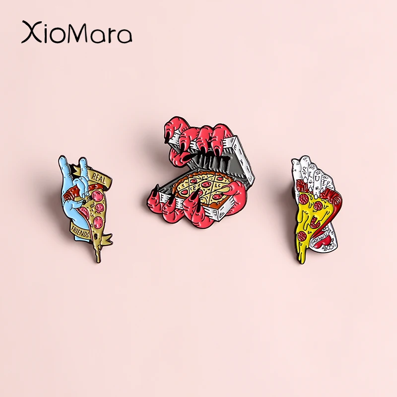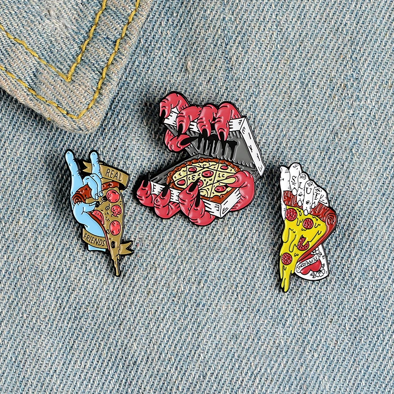 Эмалевые заколки в виде зомби пиццы, ужасные значки на Хэллоуин, броши, заколки для лацканов джинсовой рубашки, крутые украшения в стиле панк для реальных друзей, подарки