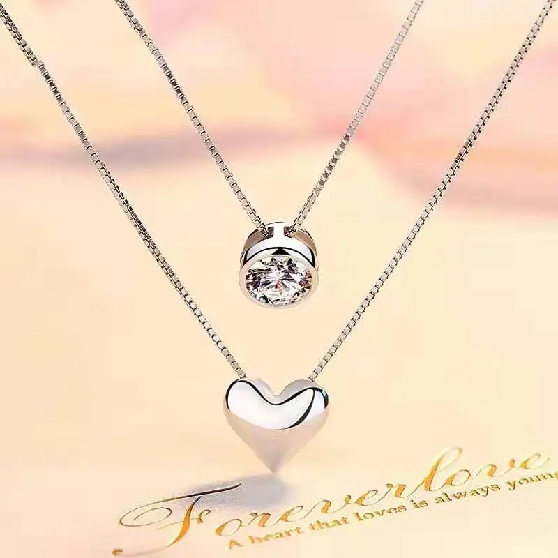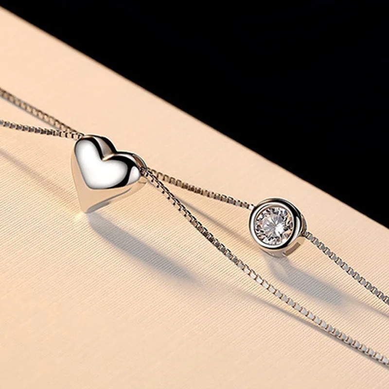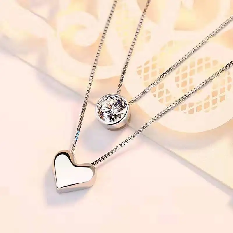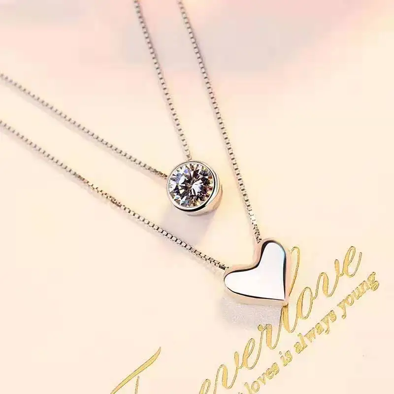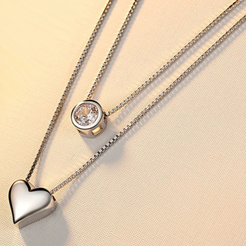 Цепочка-чокер женская из серебра 925 пробы, с двухслойным кулоном из циркония, S-N157