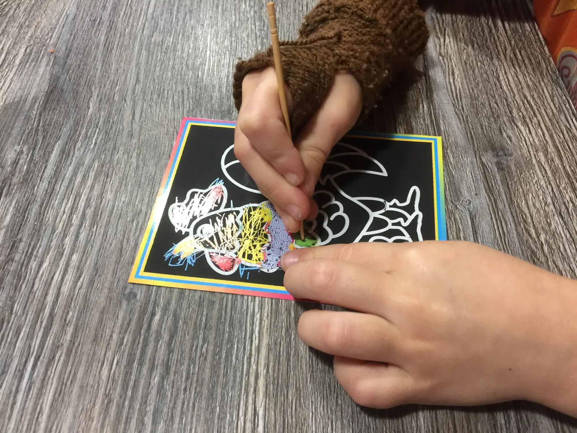 Девочкам было очень интересно царапать и окрасить песком