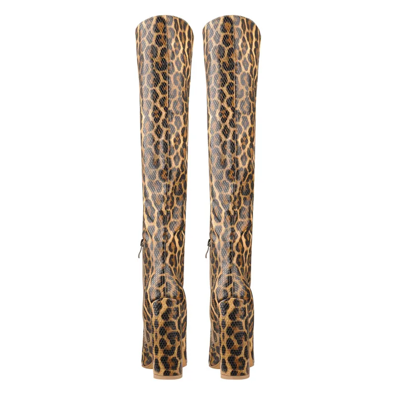 Женские сапоги на молнии Onlymaker, сапоги до колена на высоком каблуке 10 см, леопардовые вечерние сапоги на толстом блочном каблуке