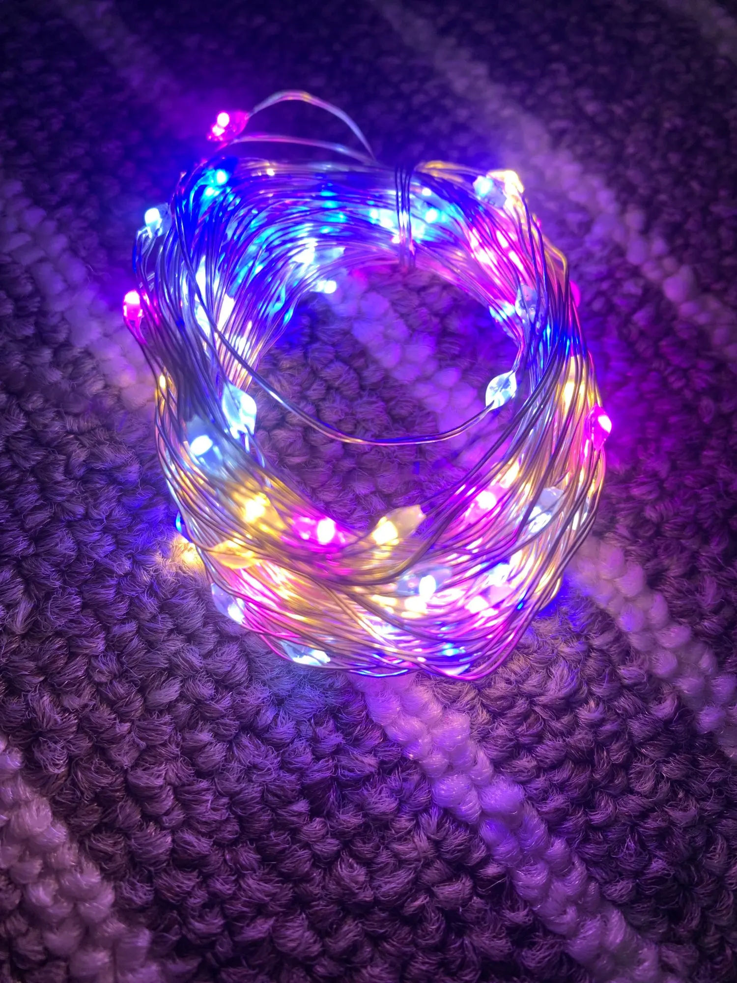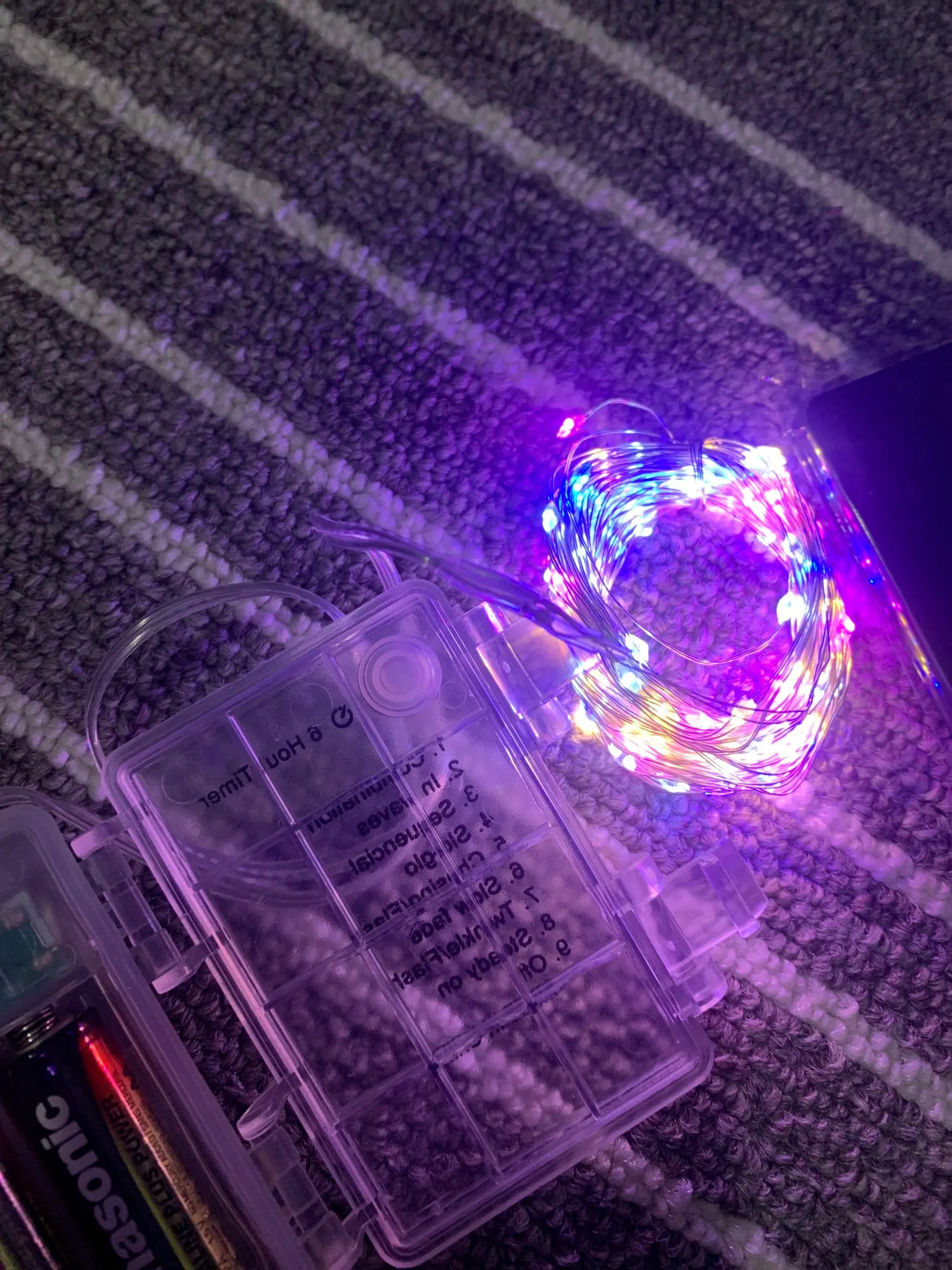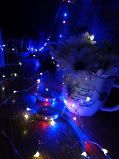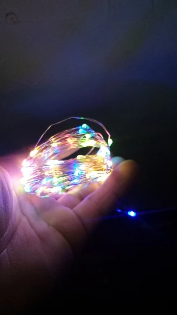 Отличная мини гирлянда. Яркая, разноцветная. Два режима - статический и мигание. Работает от двух таблеток cr2032. Доставка быстрая. Рекомендую