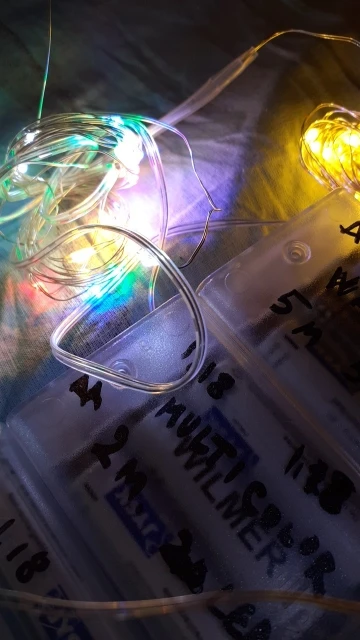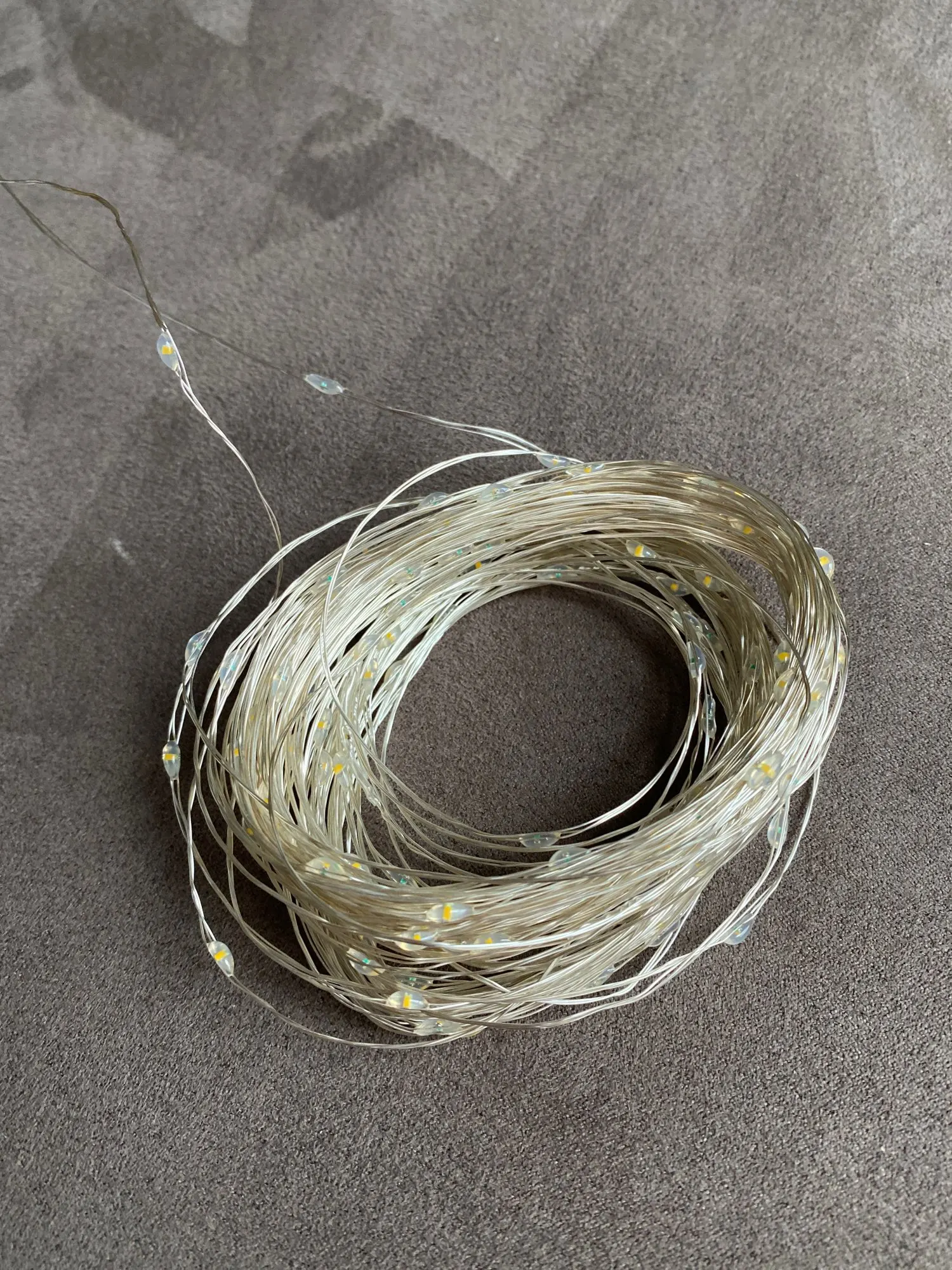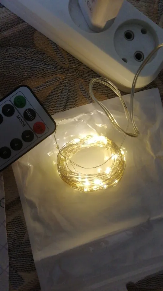 объединили с парочкой заказов, дошло за 3 недели, новая Почта Беру не первый раз, Дочка по потолку и стенам делает себе ночники :) жаль что пульты одинаковы и запустить можно с пульта лишь все вместе. Ну это такое. В этой проволока серебряная, что гораздо незаметнее желтой. Не забудьте докупить батареи в пульт, года 1, 5 их уже не вкладывают