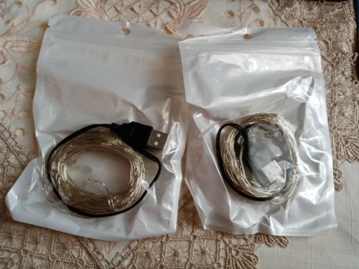 Брала с купоном 1/3 в распродажу в конце сентября. Доставка три недели в сборной, продавец отправил треком ZF.. Гирлянды святят, в живую ярче. На батарейках, защёлка без винтика, около метра. На юсби 10 м, получилось 75 кругов проволочки, диаметр 13-14 см. Продавцу спасибо, рекомендую.