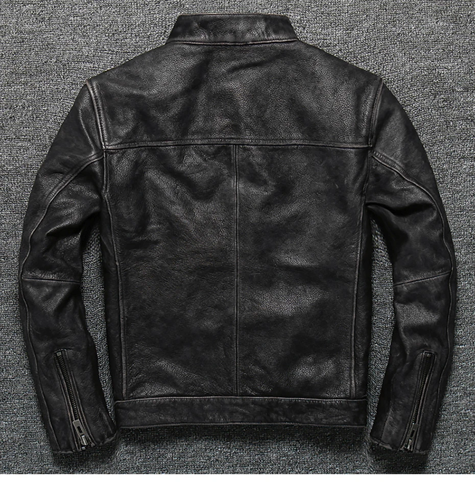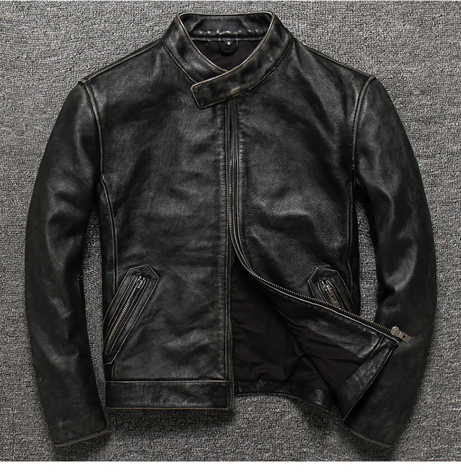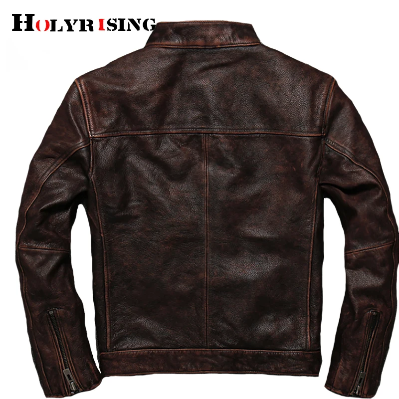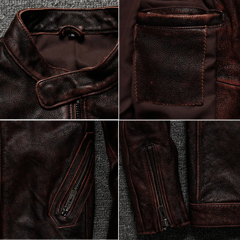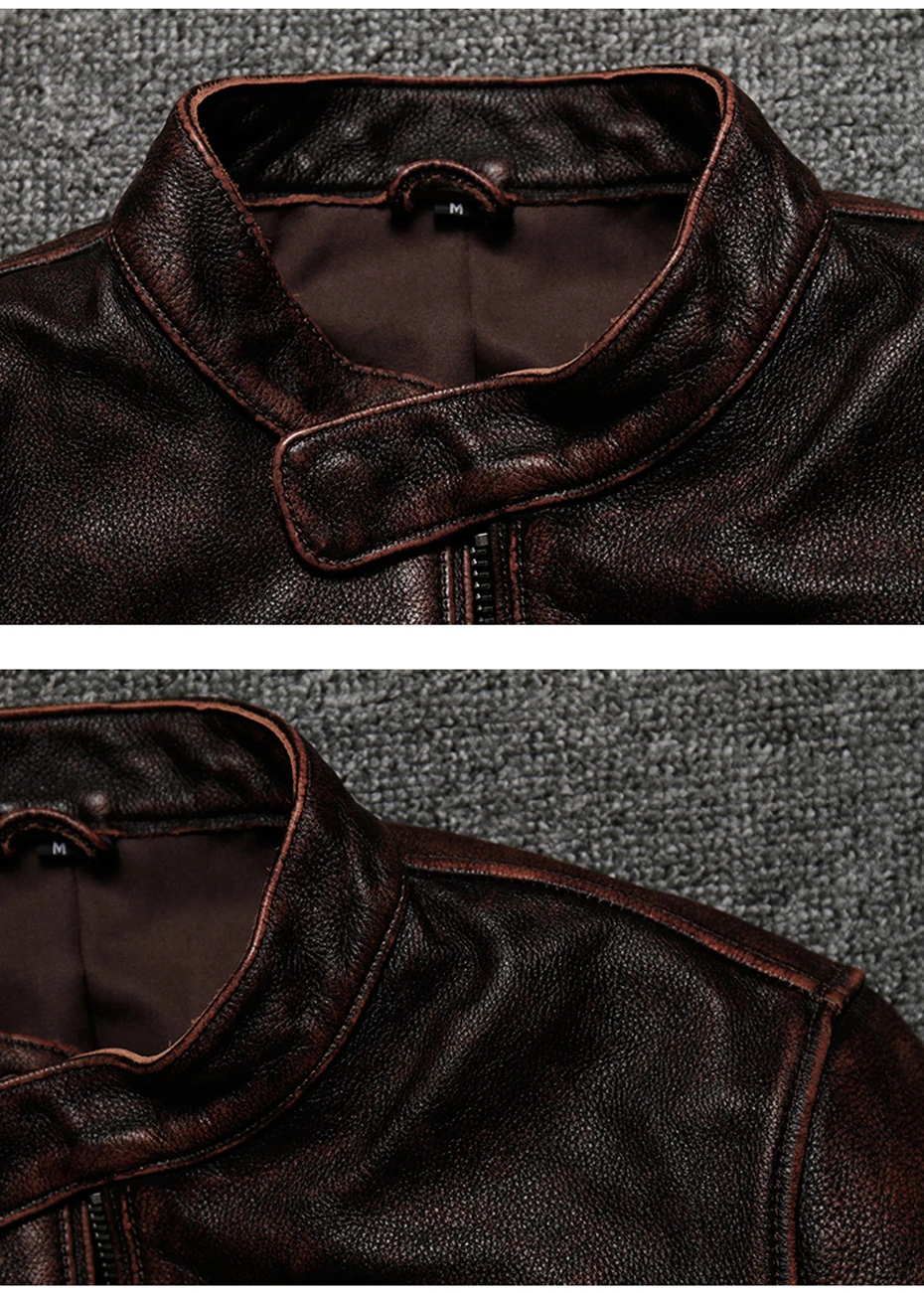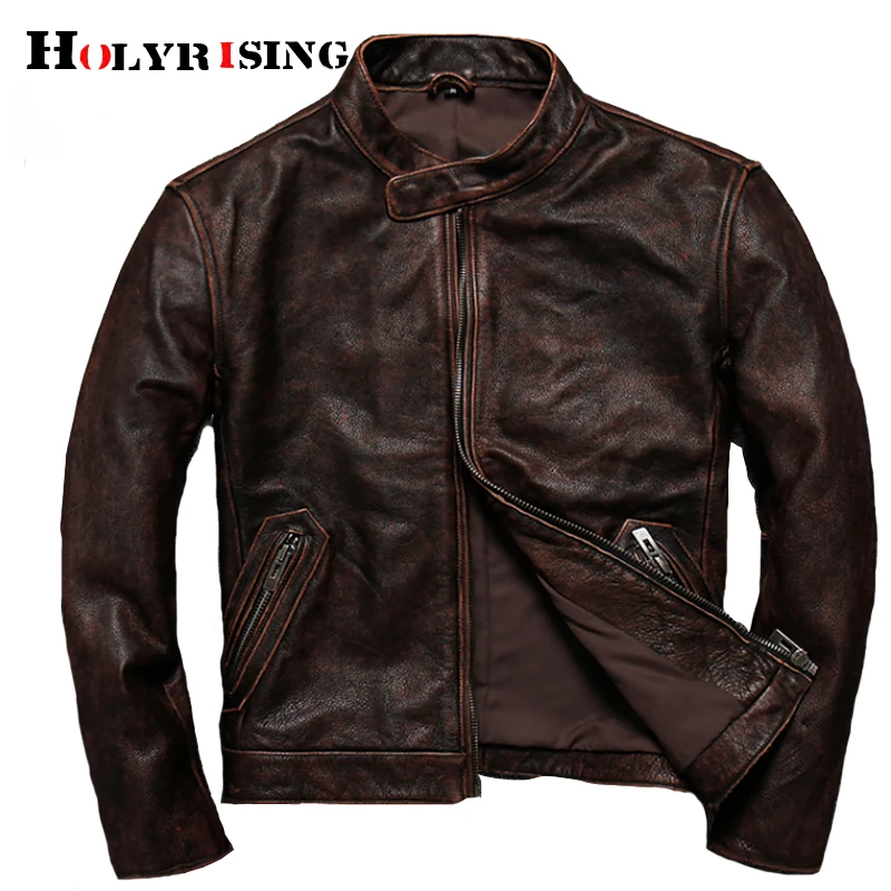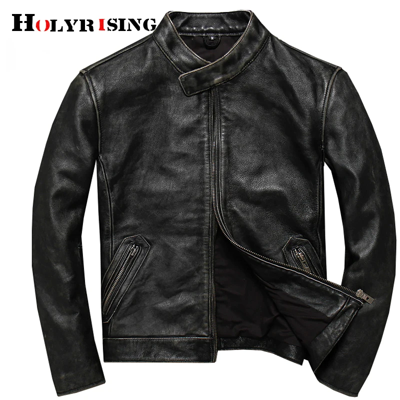 Мужская винтажная куртка из натуральной кожи, мотоциклетная куртка из натуральной воловьей кожи, зимняя верхняя одежда 19038-5