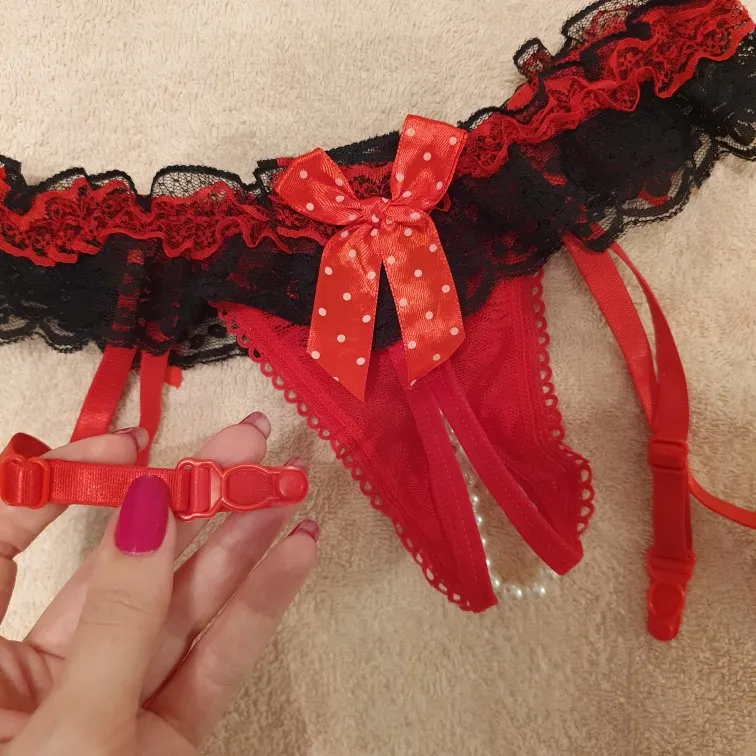 трусики красные с черным шикарные, сшиты тоже хорошо...но...они очень маленькие...по отзывам читала, говорили до 50 нормально идут, вранье...максимум до 44...очень жаль конечно, что не прийдется их одеть...да и не подаришь такое ни кому..