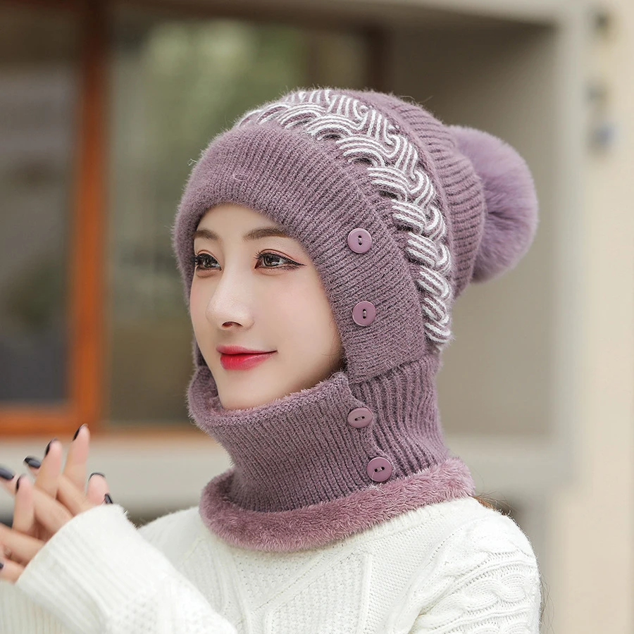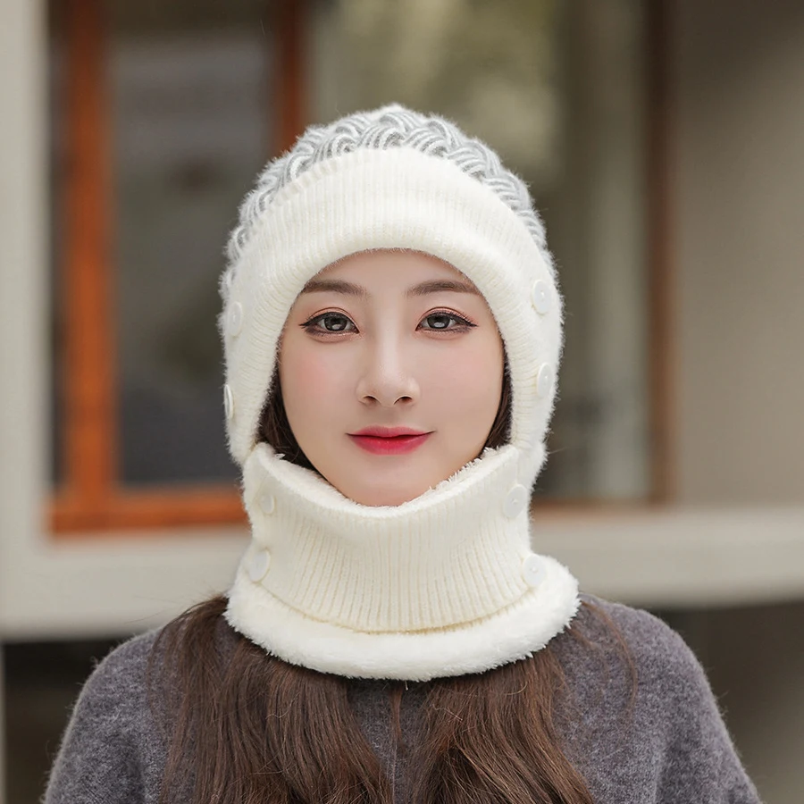 Женская шапка, шерстяная Балаклава, маска для лица, шапки, облегающая шапка с защитой ушей теплый шарф и шапка, вязаные шапки, зимний утепленный шарф, шапка