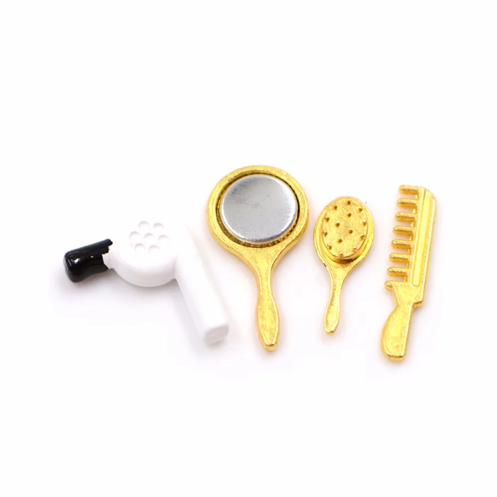 Пластиковая зеркальная мебель для кукольного домика, 1 шт., пластиковая расческа, фен для волос, зеркальная рамка, аксессуары для зеркал, миниатюры для кукольного домика 1:12