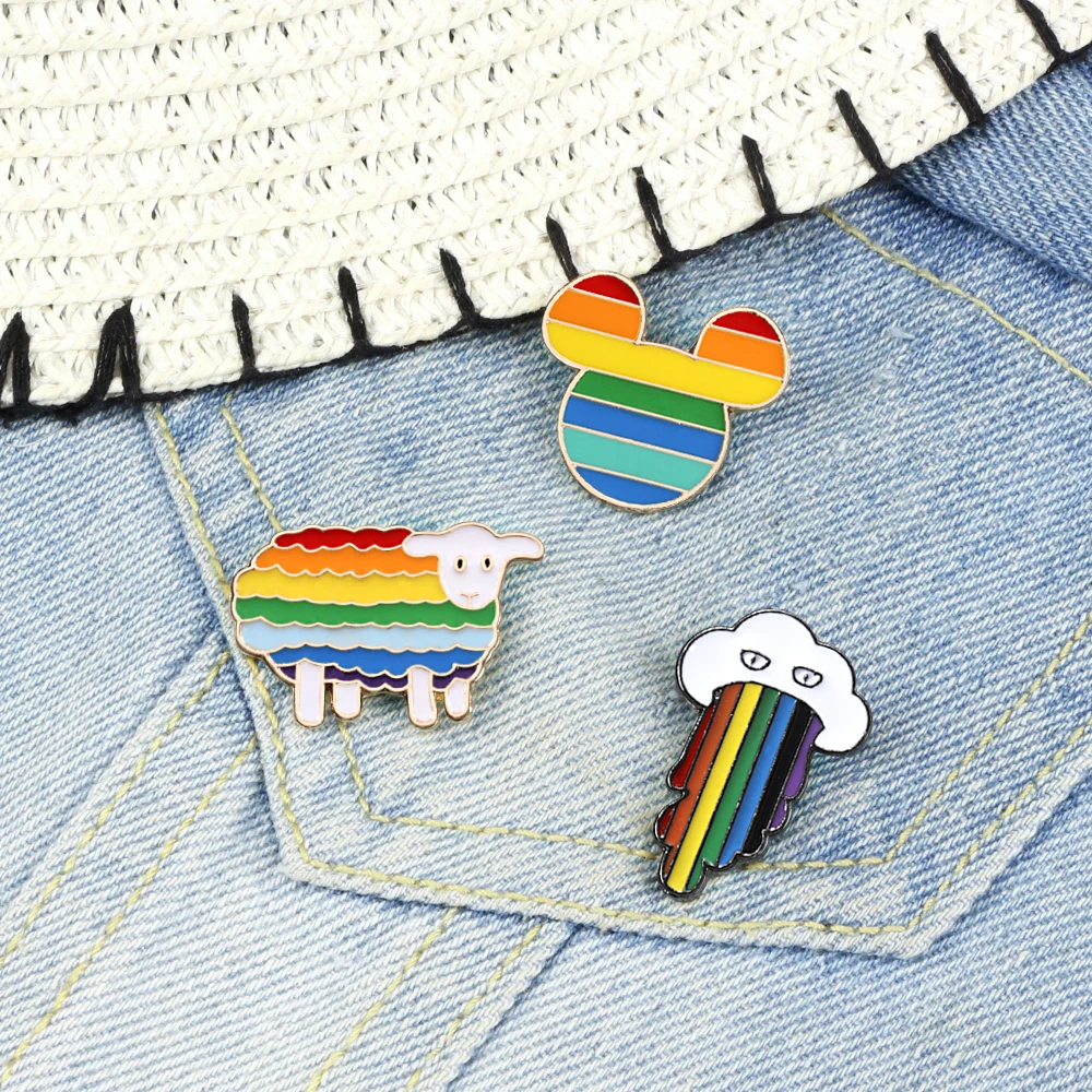 2-3 шт.компл. значок булавки на лацканы ювелирные броши булавка Радужная мышь игра на палец вращающаяся овечка куртки пуговица ЛГБТ брошь подарок для любимых