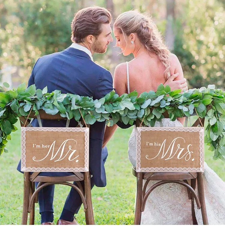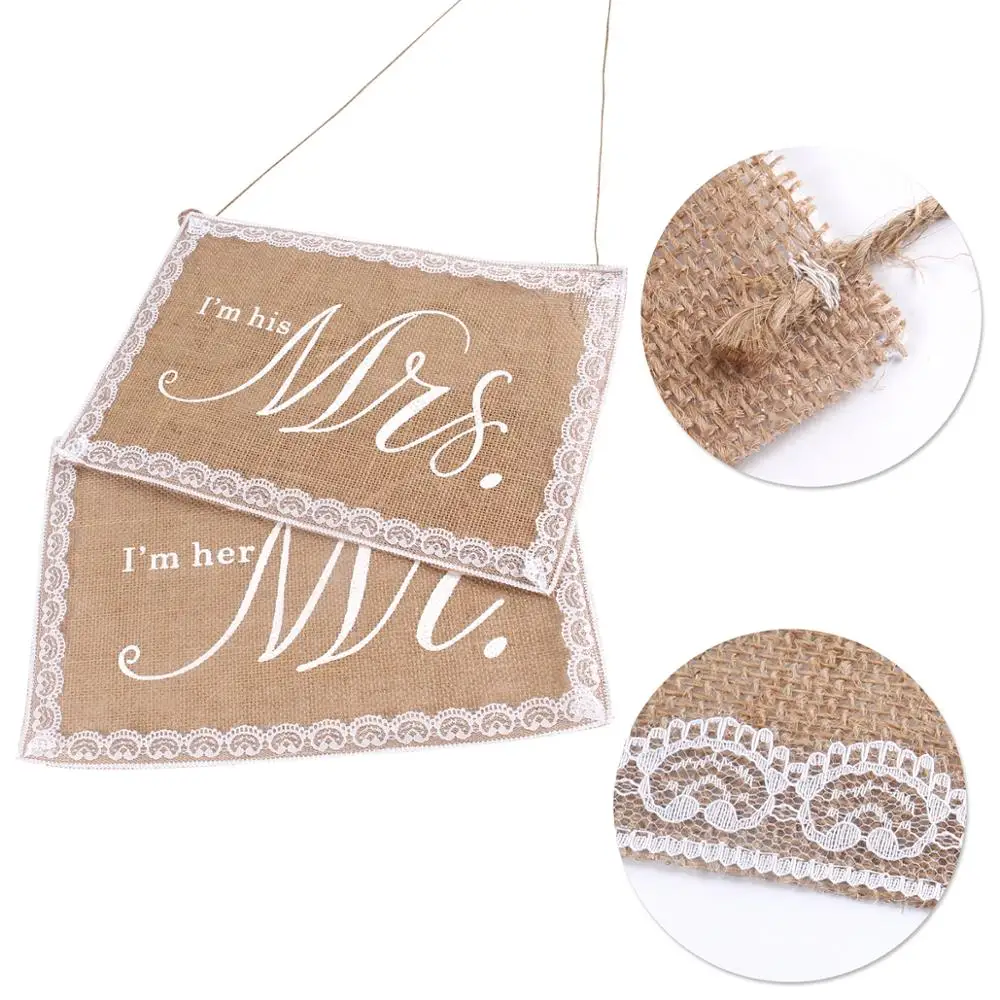 Mr Mrs стул с джутовым баннером баннер винтажная деревенская Свадьба Декор вечерние Свадебный декор для свадьбы жениха невесты для праздника товары для вечевечерние