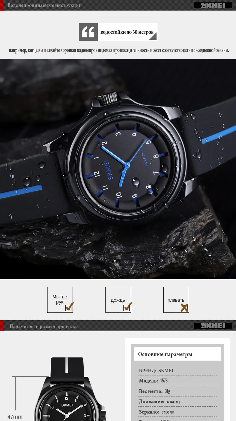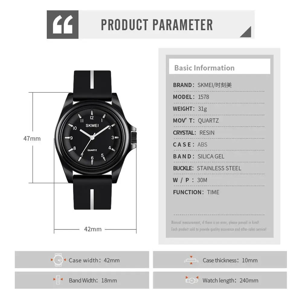 Часы SKMEI мужскиеженские наручные, Модные Кварцевые водонепроницаемые для пары, для мальчиков и девочек, 1578