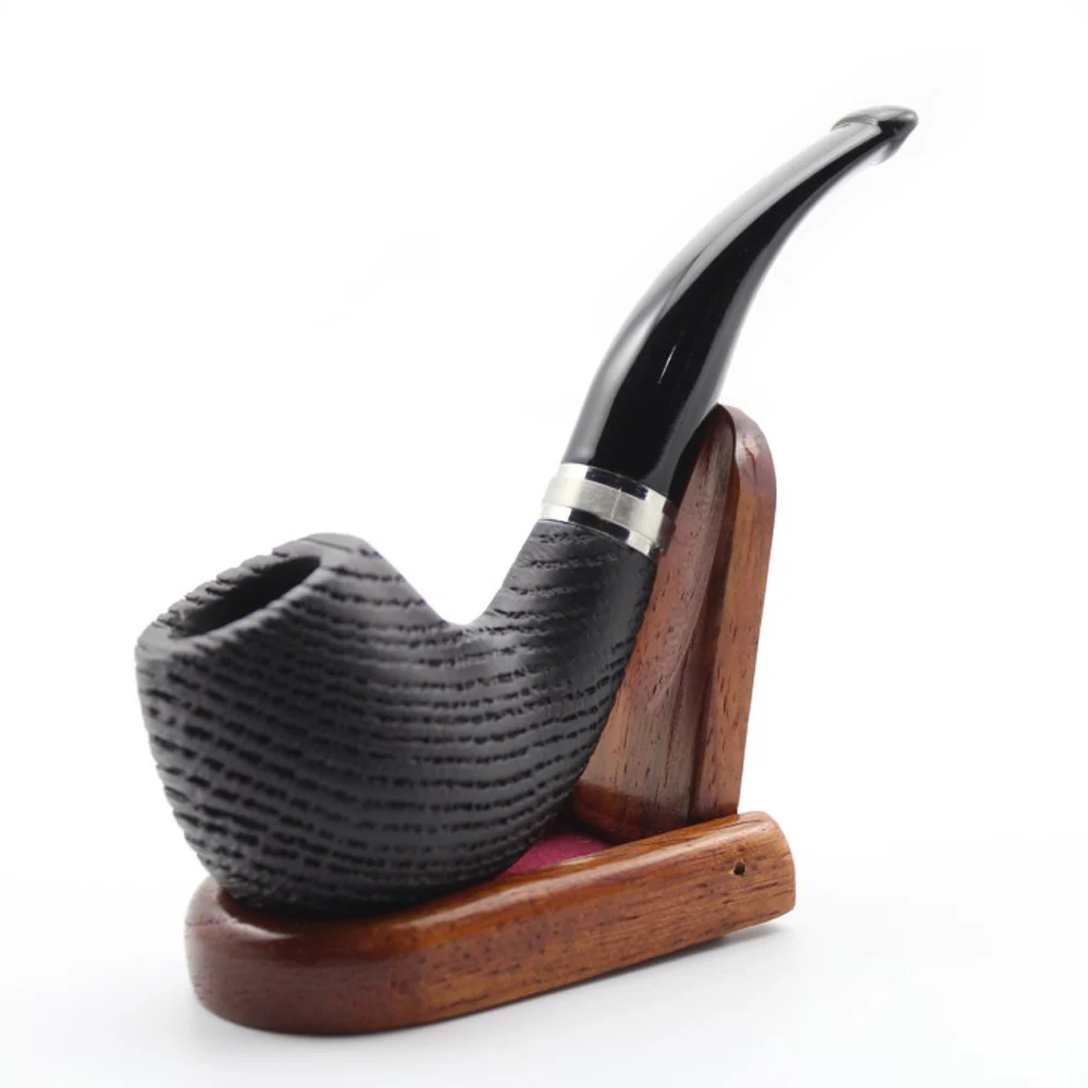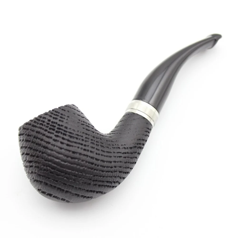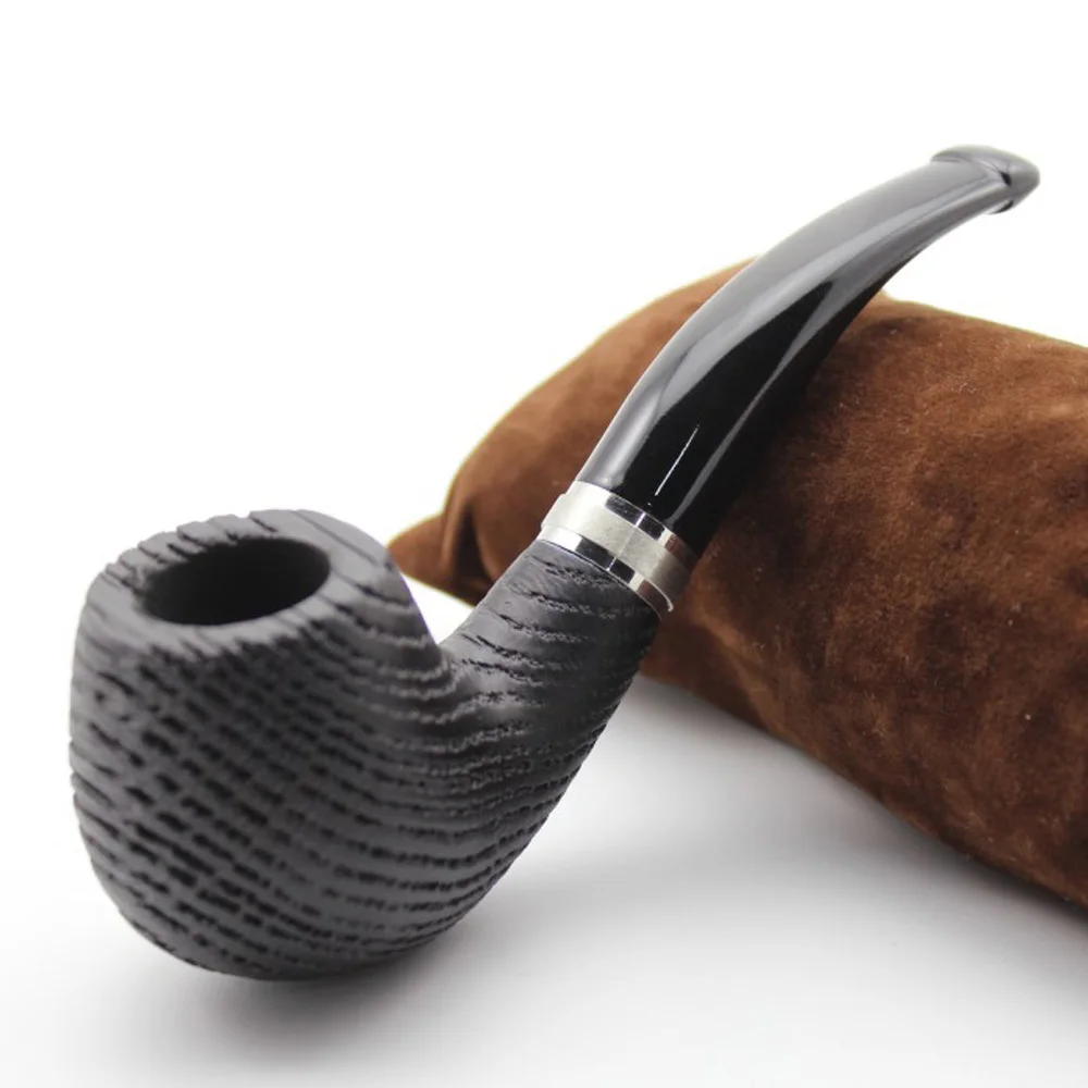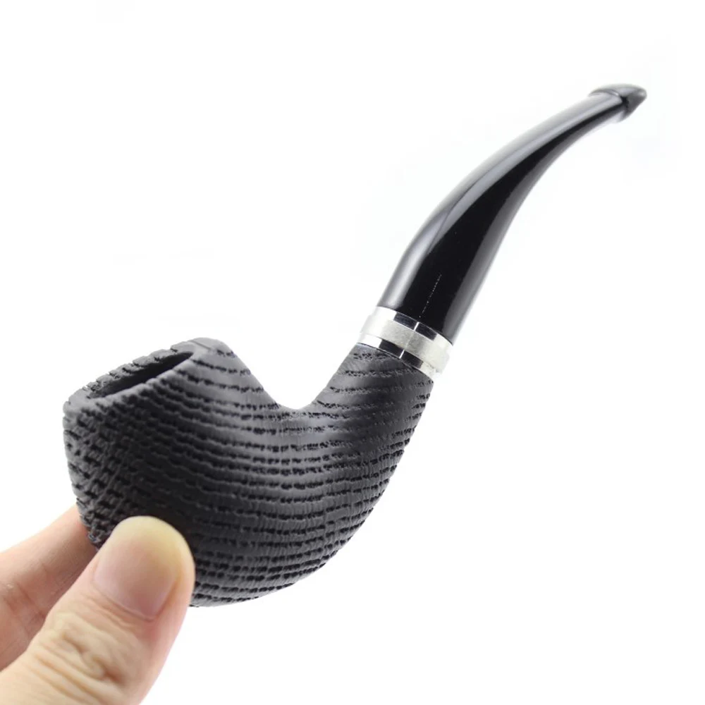 Винтажная курительная трубка из натурального дуба, деревянная круглая чаша ручной работы с пескоструйной обработкой, кольцо с серебряным покрытием и фильтры диаметром 9 мм