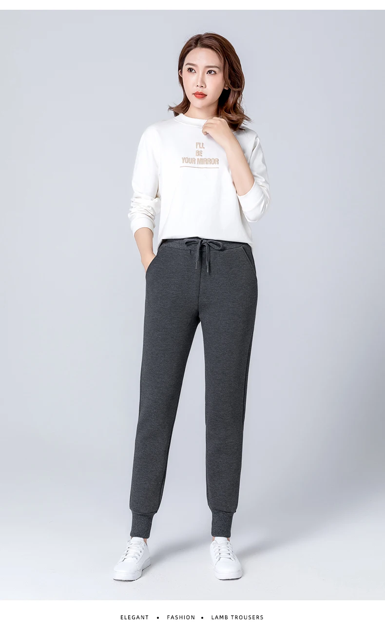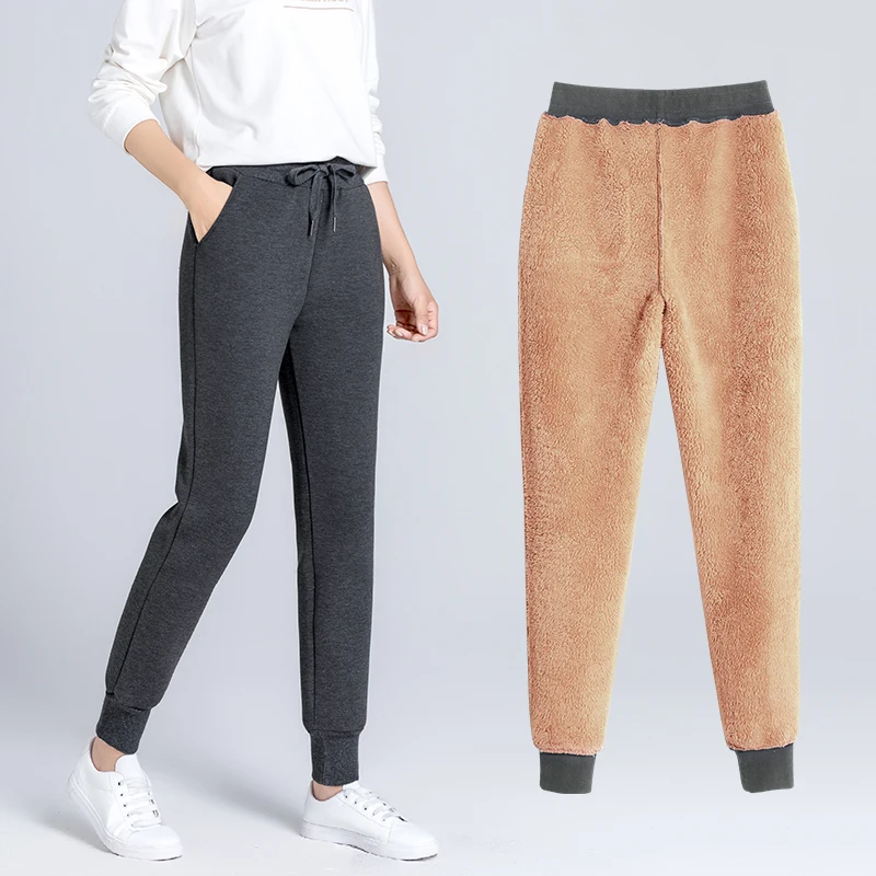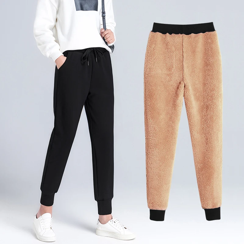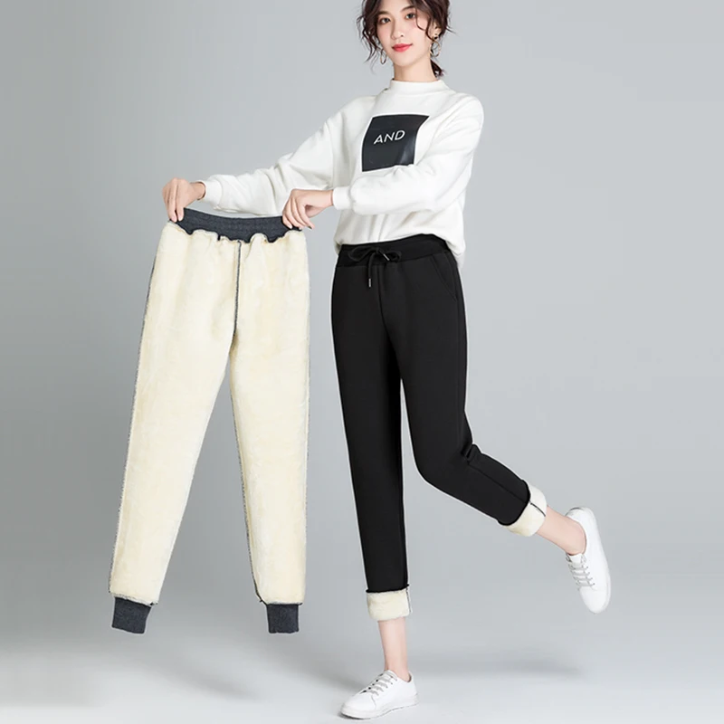 Женские зимние толстые кашемировые брюки из шкуры ягненка, теплые женские повседневные брюки, свободные брюки Harlan, длинные брюки размера 5Xl