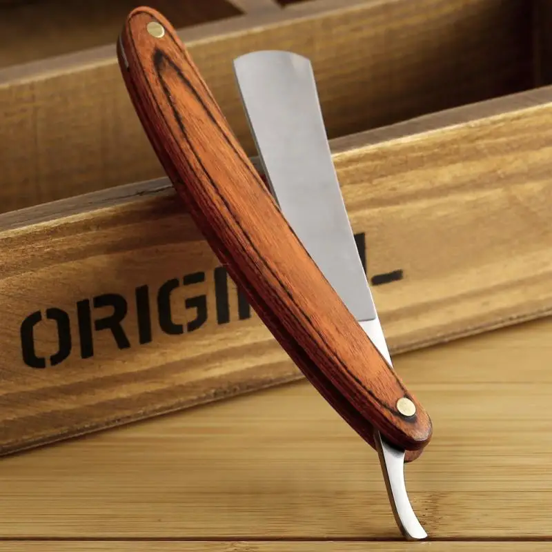 Парикмахерская бритва с прямыми краями из нержавеющей стали складные инструменты для удаления волос с деревянной ручкой