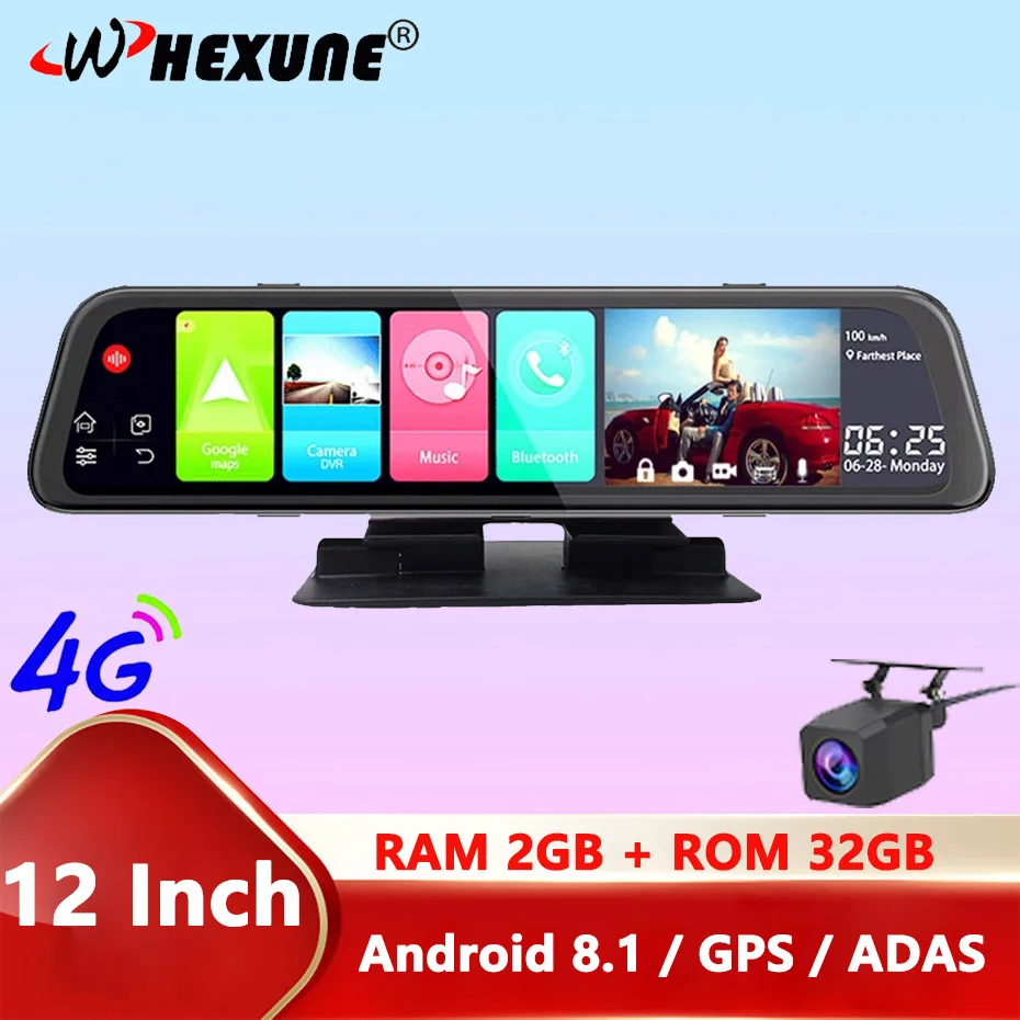 Автомобильный видеорегистратор WHEXUNE, 4G, 12 дюймов, 4-канальный ...