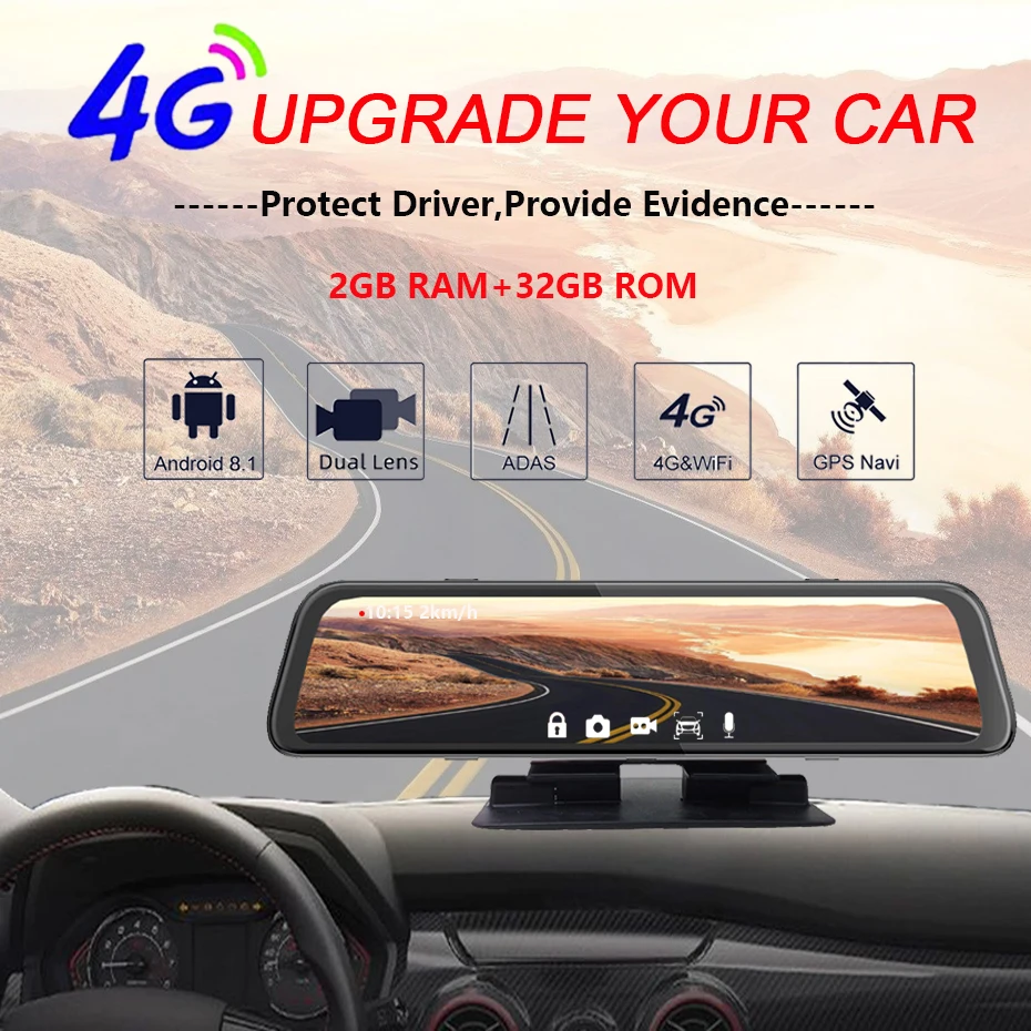 Видеорегистратор 4G на зеркало заднего вида, 10 дюймов, WIFI, GPS