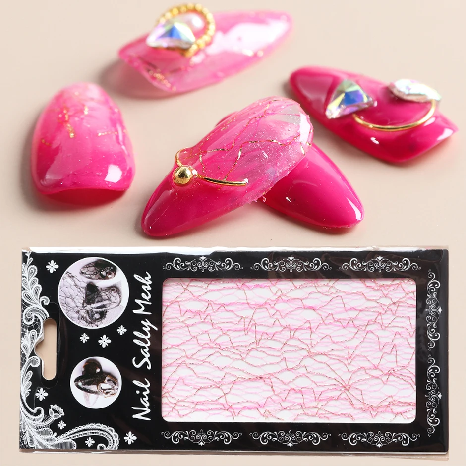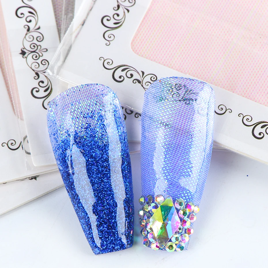 3D сетчатая наклейка для ногтей, 1 шт., золотая, серебряная сетчатая лента для ногтей, Голографическая клейкая шелковая фольга, украшения для ногтей, лак, наклейки CH1540-1