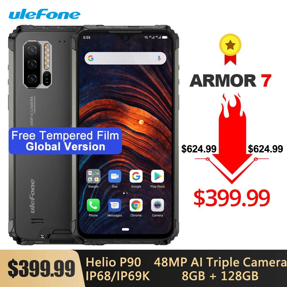 Смартфон Ulefone Armor 7 глобальная версия, 8 + 10,0 ГБ, Android 128, процессор Helio P90 8-ядерный, тройная камера 48 МП, аккумулятор 5500 мАч