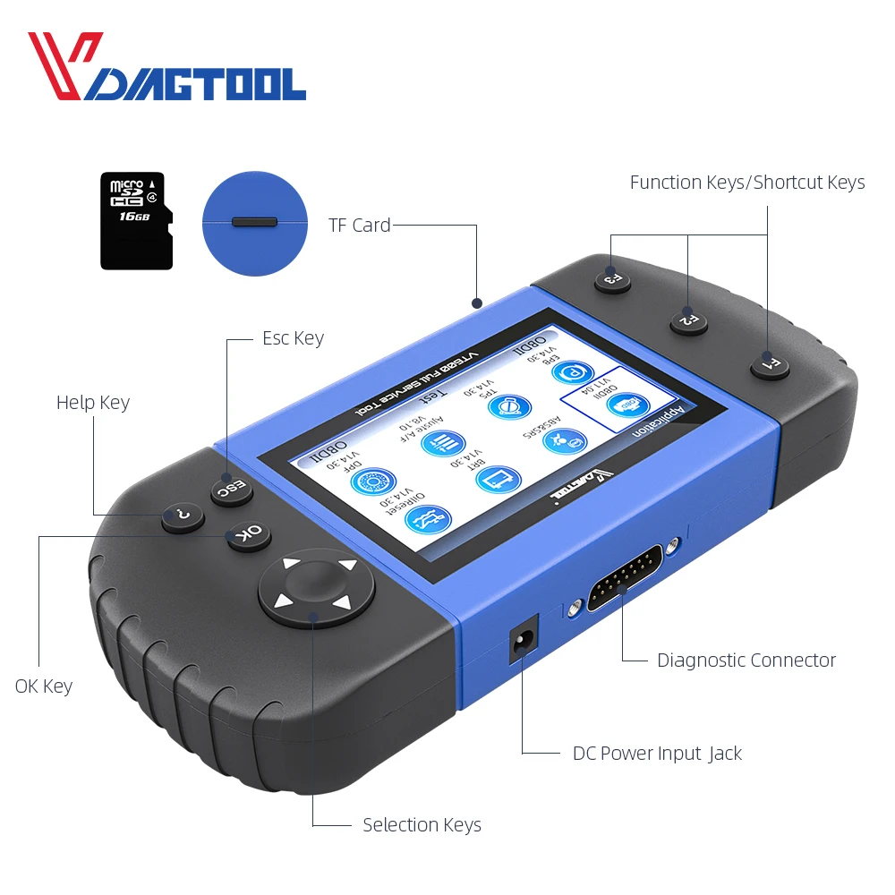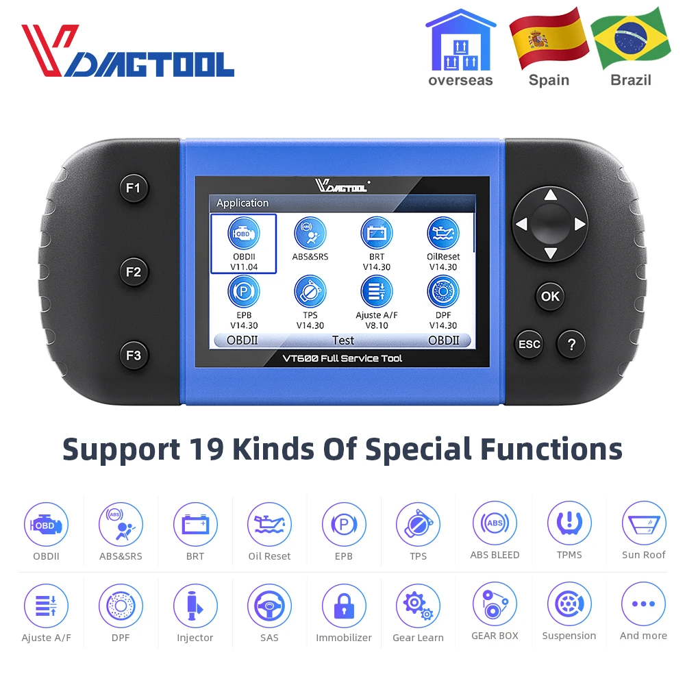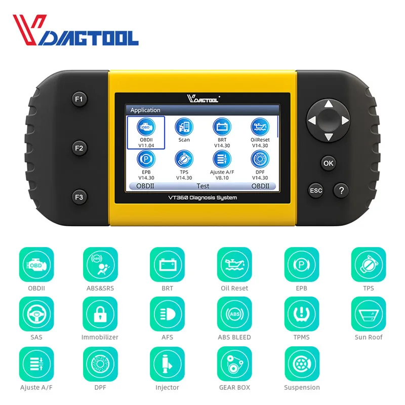 Диагностический инструмент для всех систем VDIAGTOOL VT600 VT360 VT300 с 19 видами специальных функций, поддержка кодирования инжектора ABS SRS DPF