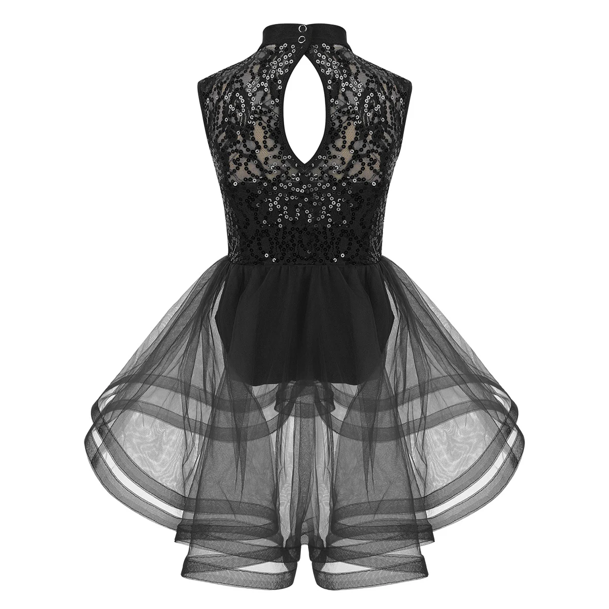 Балетное платье-пачка с блестками для девочек, платье для фигурного катания на коньках, гимнастическое трико для выступлений, костюм для лирических танцев