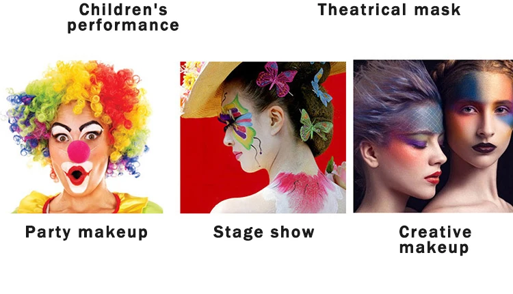 Применение: используется для профессиональной покраски тела, макияжа невесты, обучения рисованию, модельного подиума, дня рождения, фестиваля, игры в мячи и т. д.
