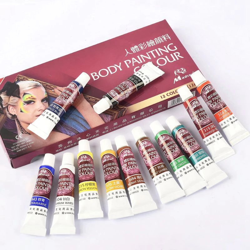 Набор Пигментных красок для тела Madisi, 12 цветов, 12 мл, маскарадный Выпускной, масляная краска для косплея, драматическая краска для лица, макияж на Хэллоуин