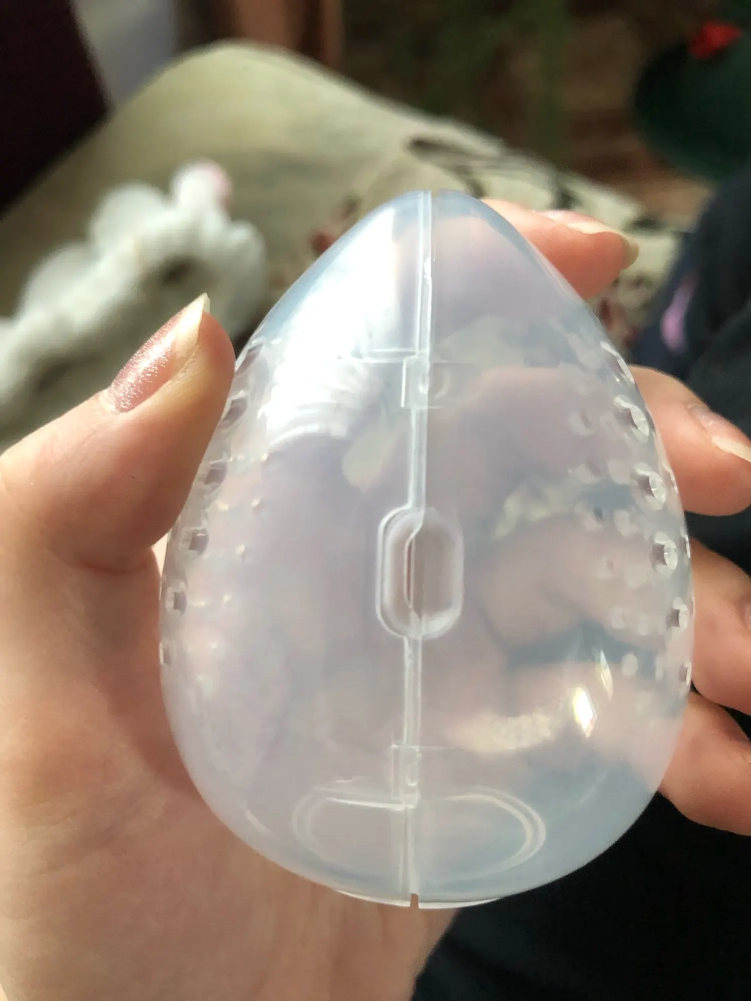 К сожалению, яйцо поступило в две части, таким образом, не закрывает хорошо :( и повреждение
