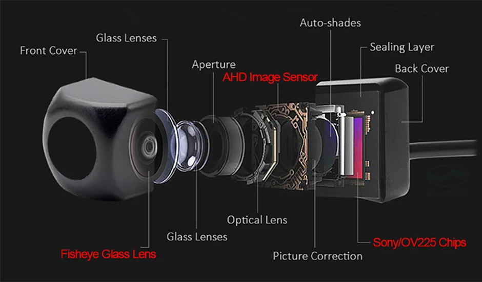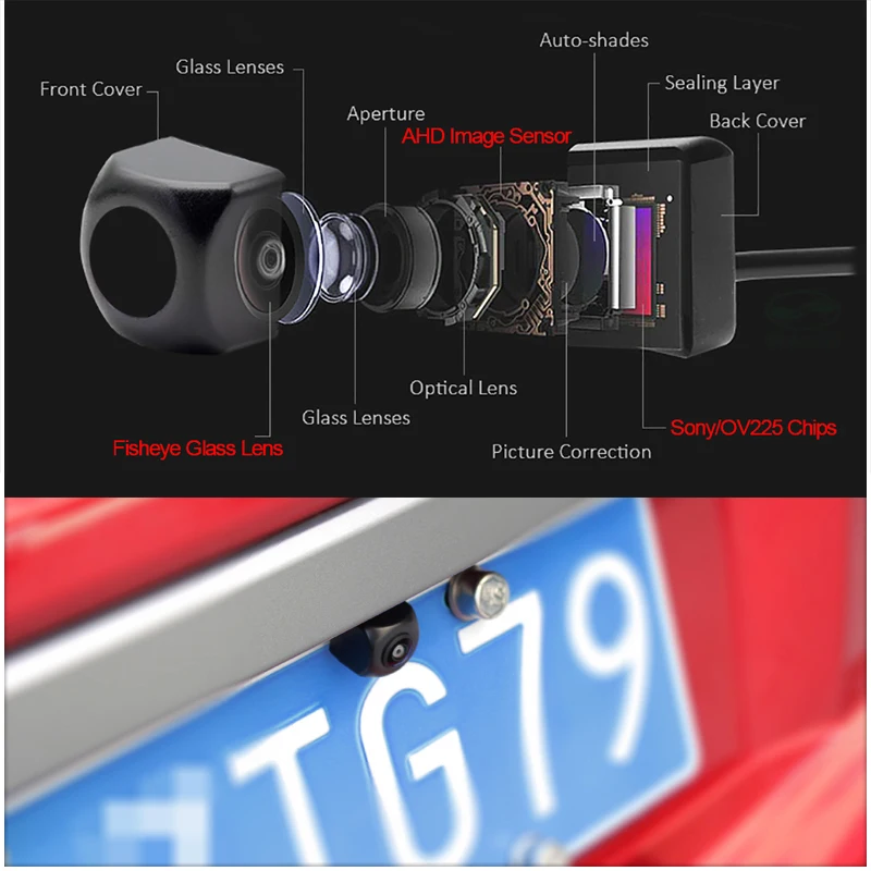 * Компоненты чипов: AHD Sony/OV225* Угол обзора: реальный 165 градусов видимый диапазон.* Эффективные пиксели: 1920 × 1080P* Формат сигнала: PAL / NTSC* Разрешение изображения: 130 Вт пикселей* Видеовыход: AHD видеосигнал (1280*720P)* Ночное видение: звездный свет ночного видения. Видимое расстояние больше 10 метров.* Изображение ночного видения: автоматическое управление коэффициентом усиления, автоматический баланс белого, компенсация автоматической подсветки• Объектив: 14/16 мм объектив рыбий глаз 6 стеклянных линз.* Низкое освещение: 0.01Lux* Отношение сигнал-шум: ≥ 69 дБ* Рабочий Источник питания: DC12V/2A* Рабочая температура: -45 °C ~ + 70 °C* Максимальная мощность: 3 Вт