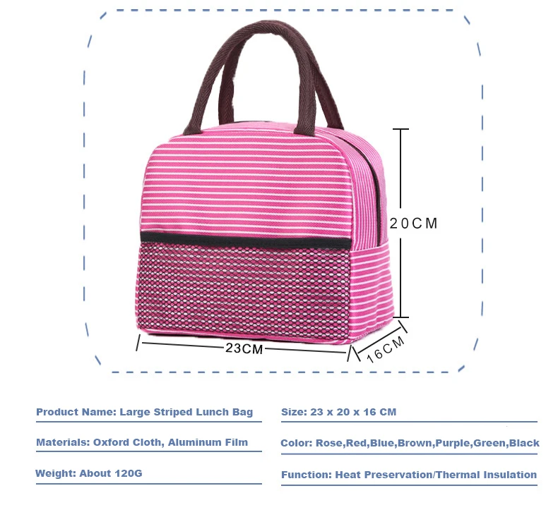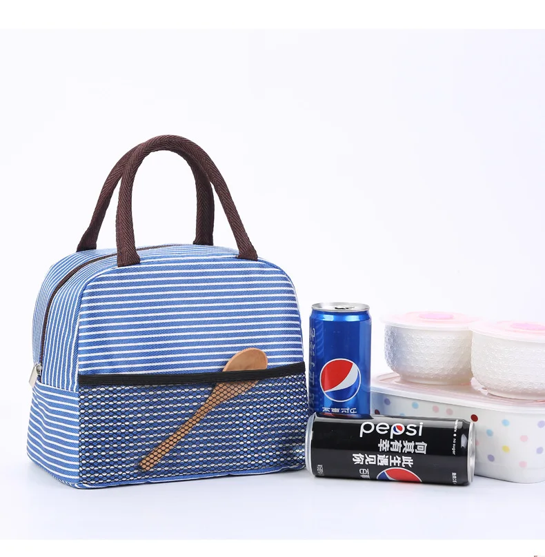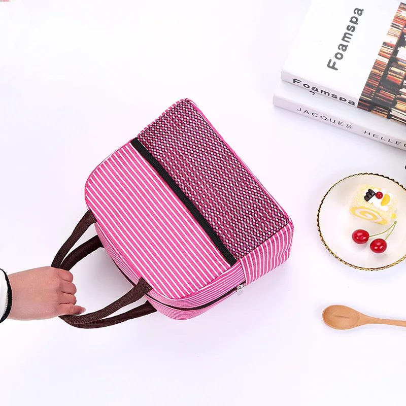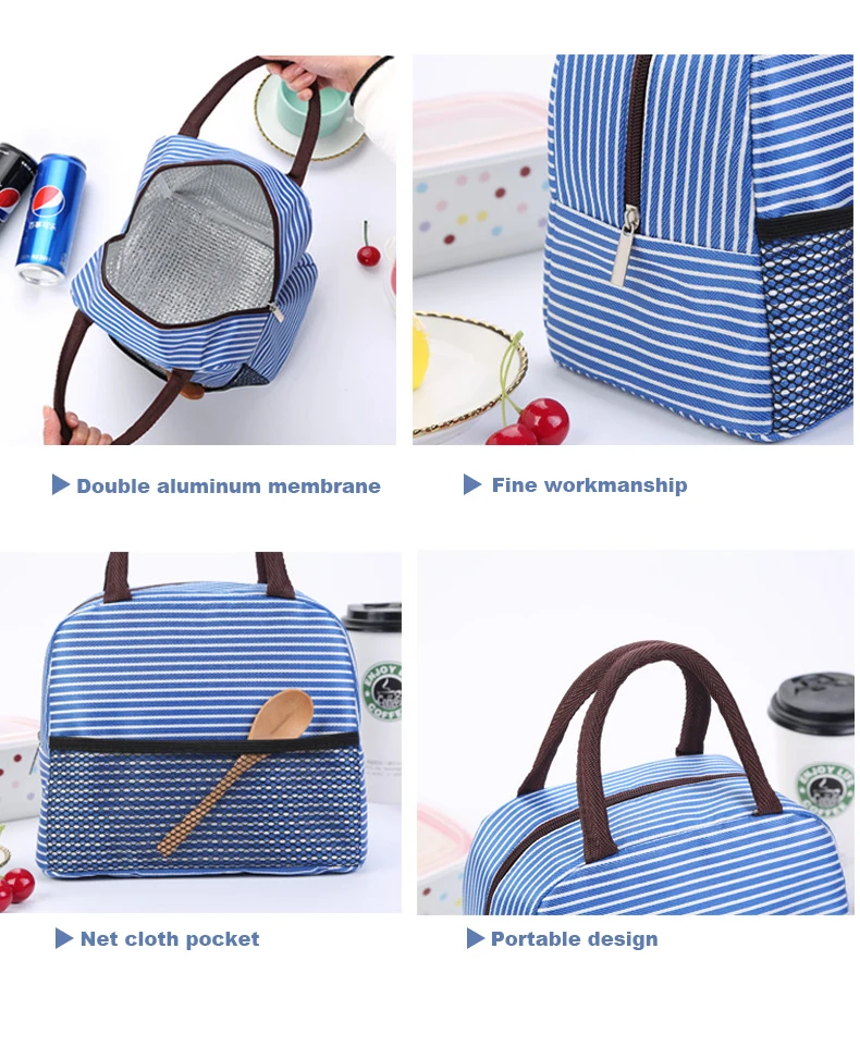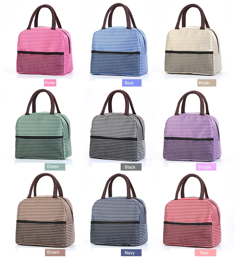 Портативный Ланч-бокс в полоску, Термоизолированный Ланч-бокс, сумка-холодильник, мешок для бенто, школьный контейнер для хранения еды
