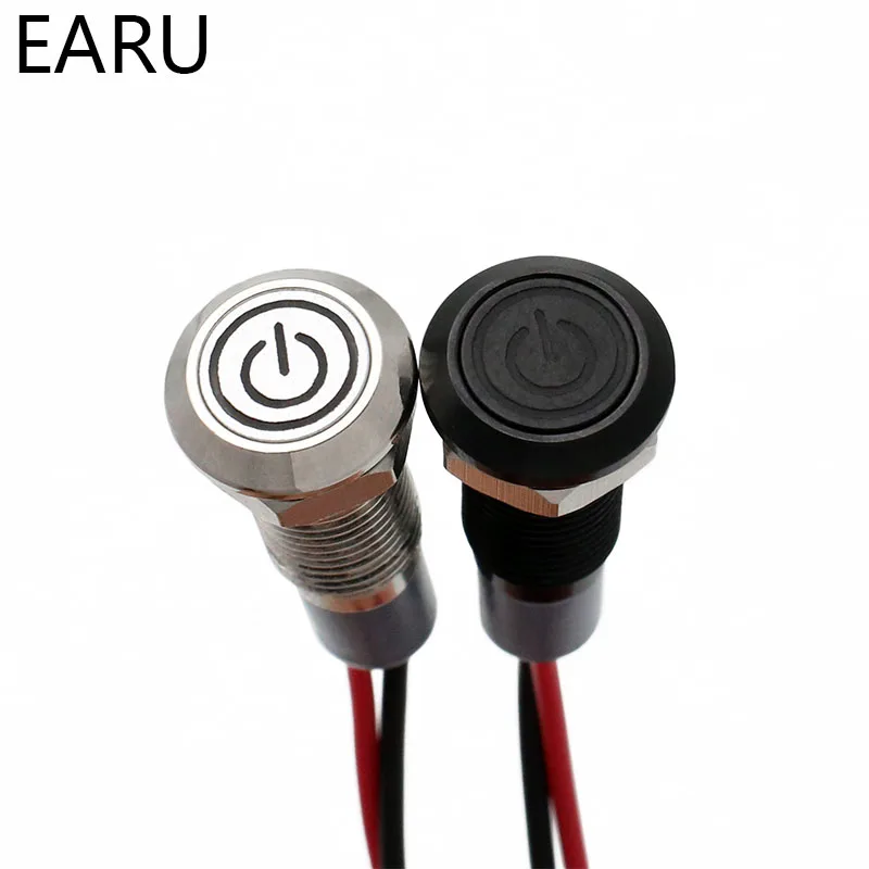 12 В 12 мм хромированный черный корпус логотип значок символ настройки Водонепроницаемый светодиодный металлический индикатор лампа пилота для автомобиля с кабелем