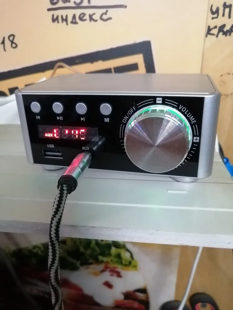 Название продукта: MA12070 стерео цифровой усилитель мощности Выходная мощность: 50 Вт + 50 Вт Мощность: DC12-24V (без адаптера питания), рекомендуемый источник питания DC19V 4.74A Ток: >3A Bluetooth: Bluetooth 5,0, не менее 12 метров (доступно) Количество каналов: 2,0 стерео Аудио вход: 3,5 мм стерео вход RCA стерео вход переменного тока, TF, U диск, USB аудио вход (может быть подключен к компьютеру/мобильный телефон/OTG USB флэш накопитель/планшет с поддержкой OTG) Размер: 110*90*50 мм Поддержка u-диска и воспроизведения tf-карт, поддержка нескольких форматов декодирования (MP3/WAV/APE/FLAC); MP3: частота дискретизации/8-48 к, скорость передачи бит/8-448 кбит/с, ширина бит/16 бит канал/моно-стерео; WAV: частота образцов/8-48K, формат/WAV ima/Microsoft AD PCM/WAV PCM, ширина бит/16 бит; FLAC: частота дискретизации/8-48K, ширина бит/16 бит; APE: быстрое/нормальное кодирование, ширина бит/16 бит. Усилитель может быть подключен к мобильные телефоны, компьютеры, планшеты, ноутбуки, MP3s, телевизоров и проекторов монитор с сенсорным экраном AV аудио (разъем Lotus) или 3,5 мм наушников выходных отверстий. Множество основных устройств Bluetooth для беспроводной передачи данных.