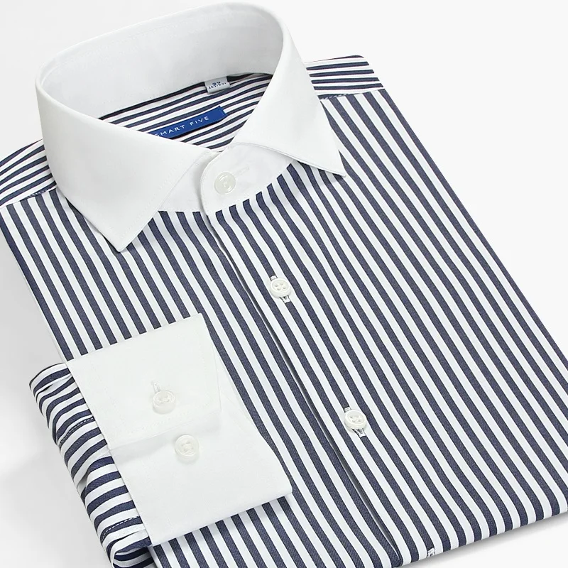 Мужская рубашка в полоску Smart Five Pactch, приталенная рубашка с длинными рукавами и воротником Виндзор в английском стиле, формальная деловая рубашка, осень 2020