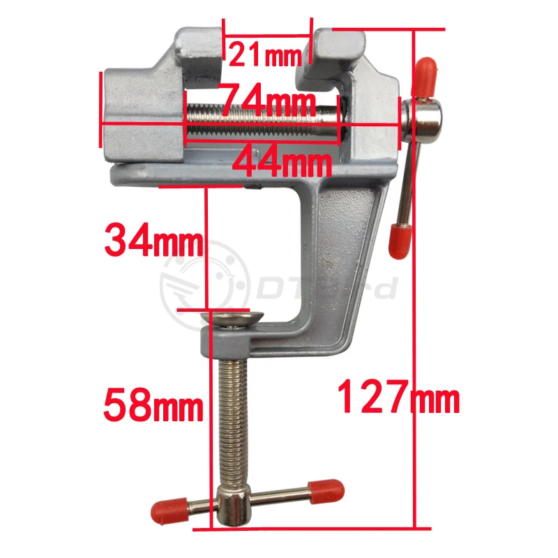 Материал: литье под давлением из алюминиевого сплава Ширина отверстия: 40 мм Диапазон открытия зажима: 30 мм Фиксированный размер патрона 35 мм Вес изделия: серебристо-красная тиска около 154 г