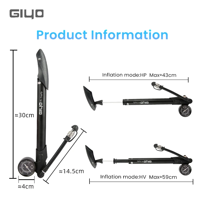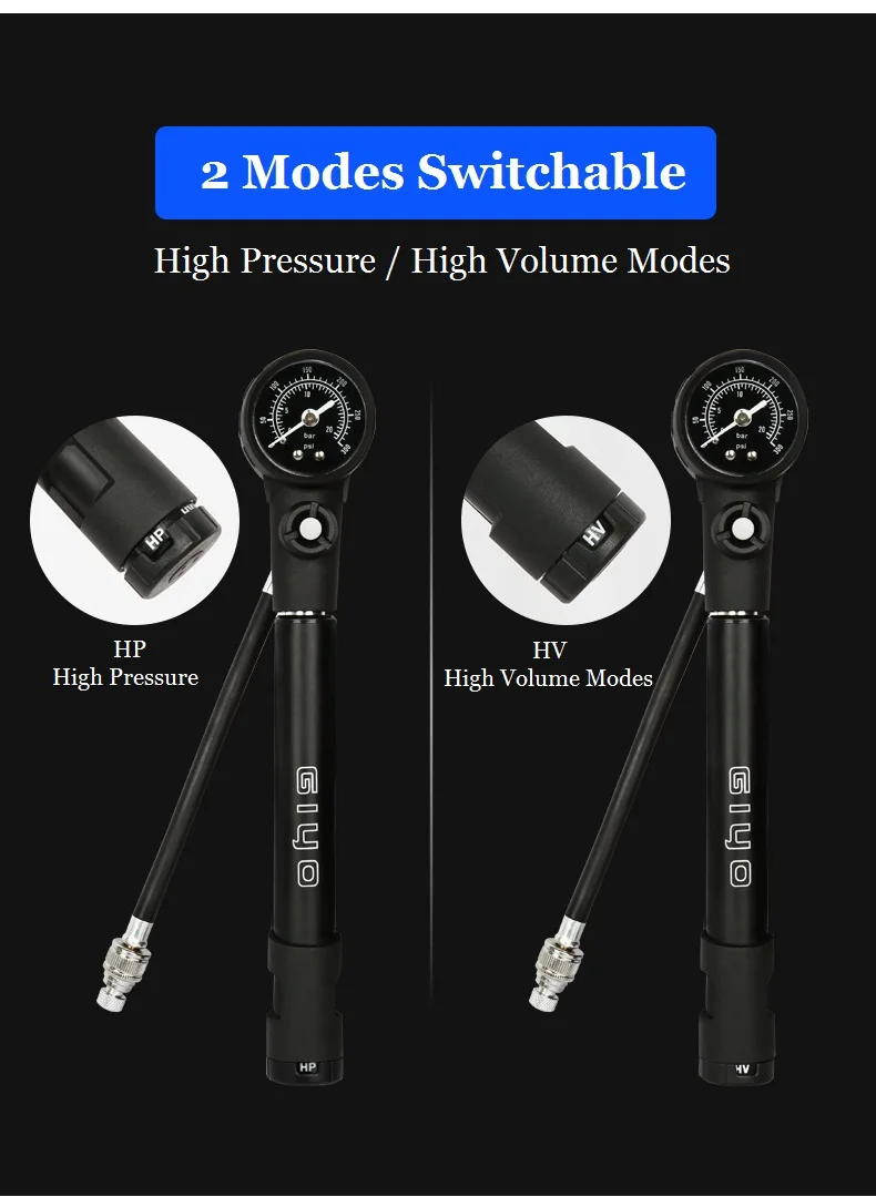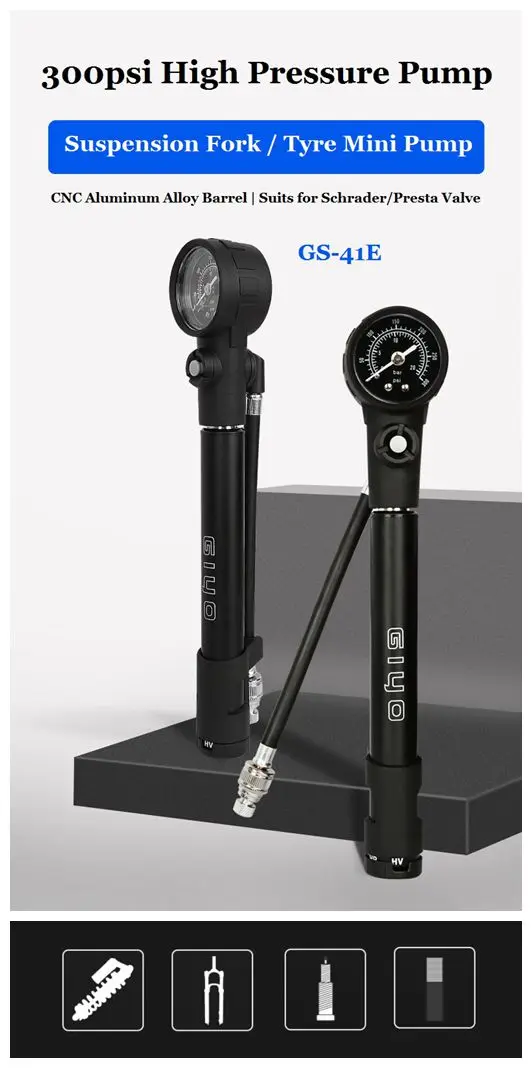 Велосипедный насос Giyo GS-41P 300psi, вилка для горного велосипедазадняя подвеска, с манометром, насос для велосипеда