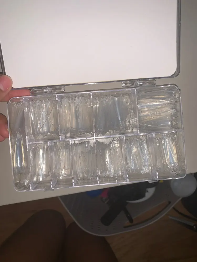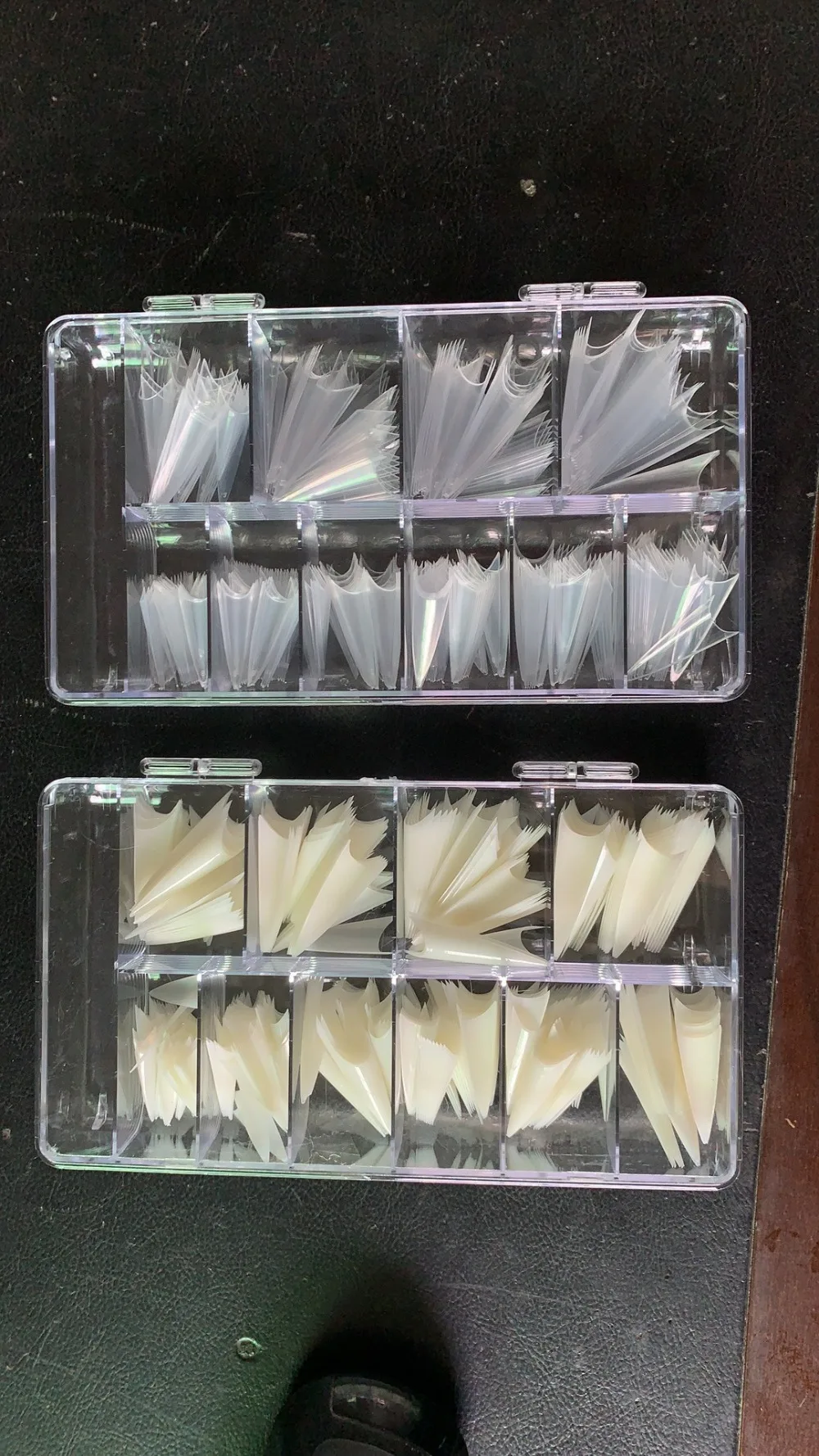 Советы такие отличные! Для цены и количества, это хорошая сделка. Плюсы: Уже в форме шпильки, поэтому изготовление гвоздей для гробов намного быстрее, потому что вам просто нужно прикрепить концы, 50 гвоздей каждого размера, прилично быстрая доставка, отлично подходит для полигеля и акриловых ногтей! Против: Кончики немного незаметны, но это, конечно, прежде чем применять продукт, В коробке нет застежки, поэтому, как только вы снимаете наклейку, она больше не безопасна и очень легко открывается, некоторые из моих размеров ногтей были уже смешаны, но это было легко исправить. Я бы купил их снова и порекомендовал их!☺②
