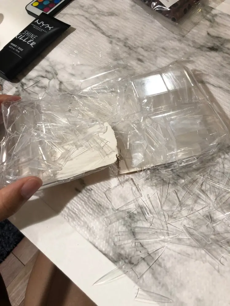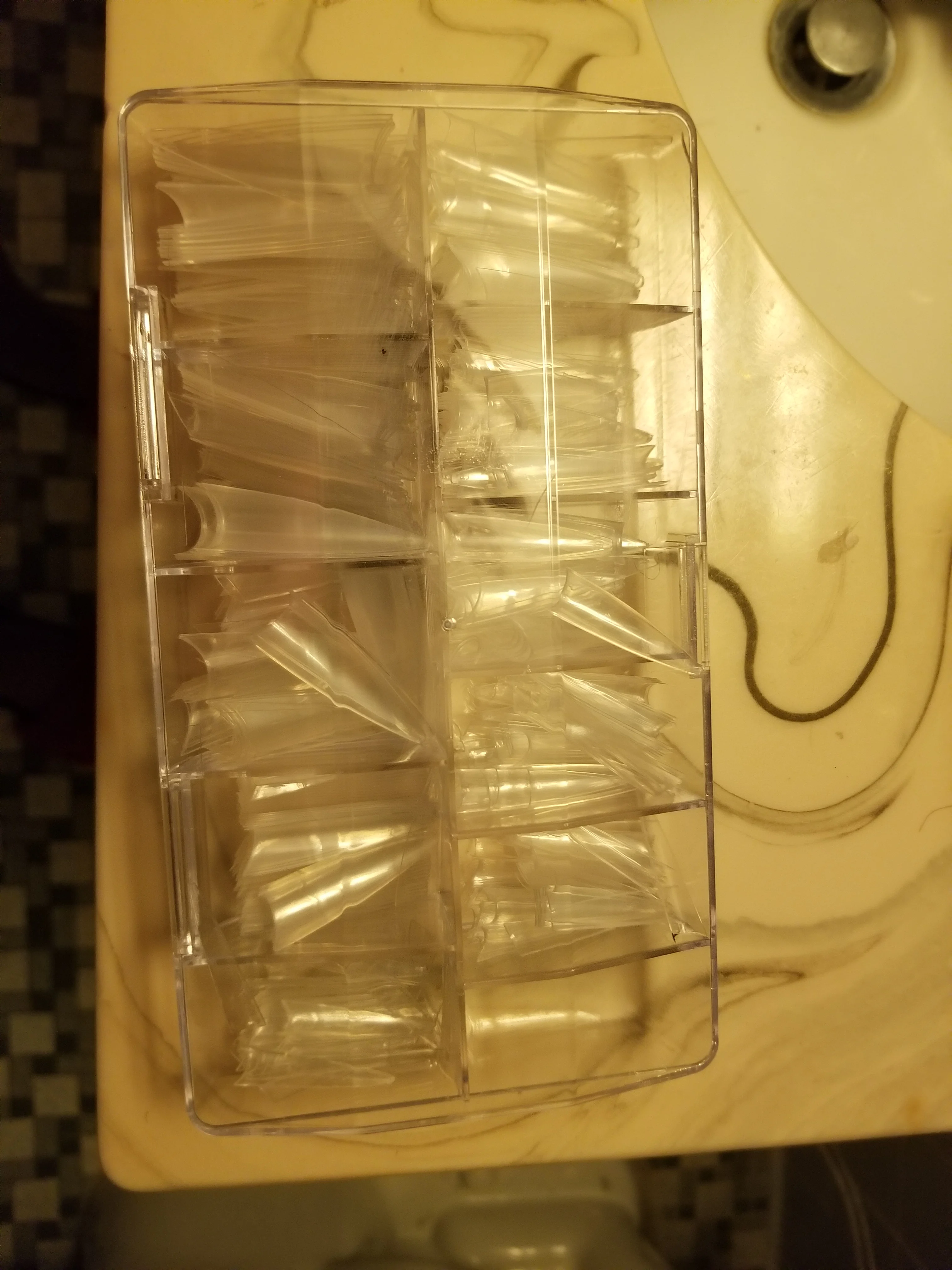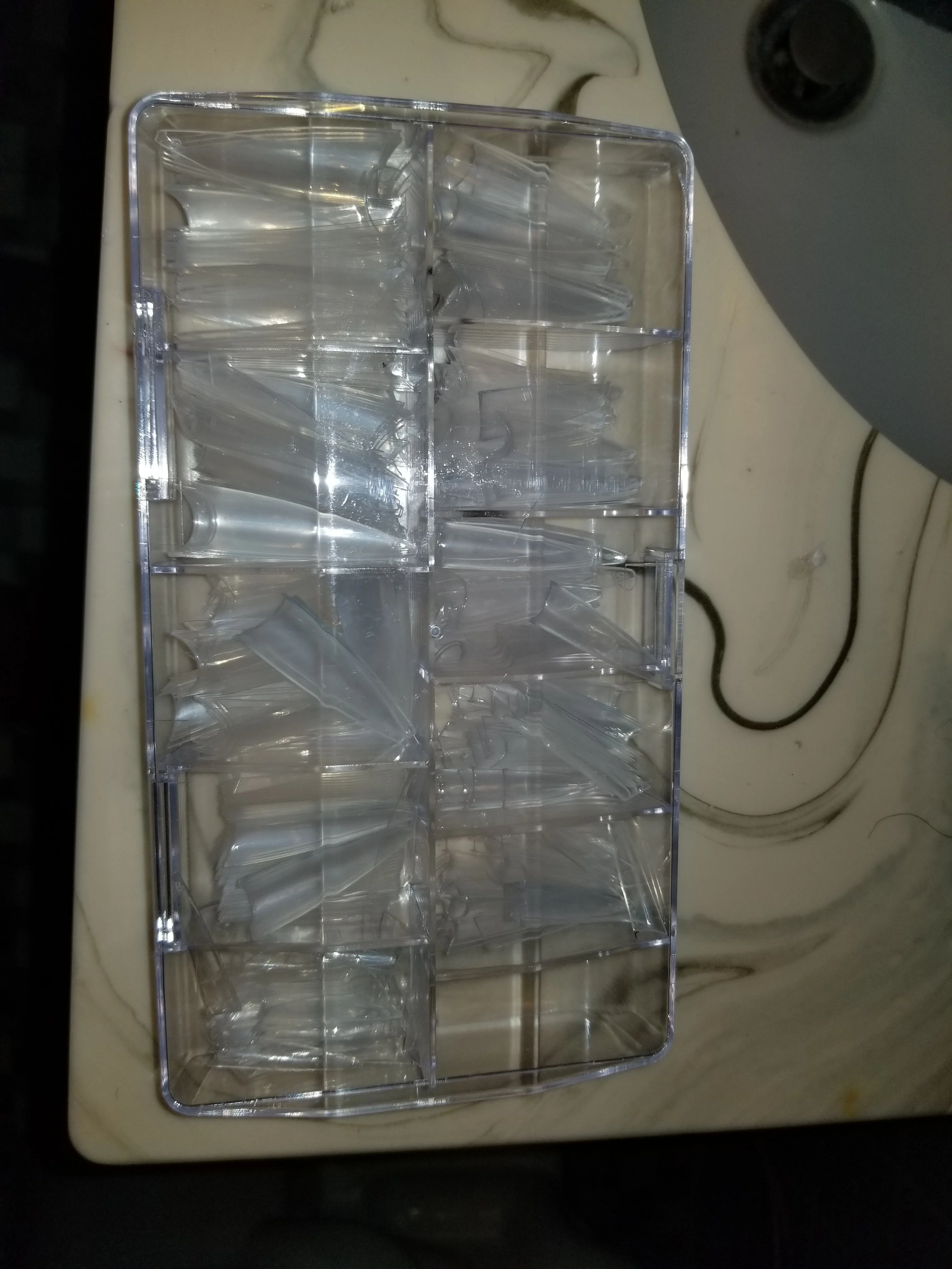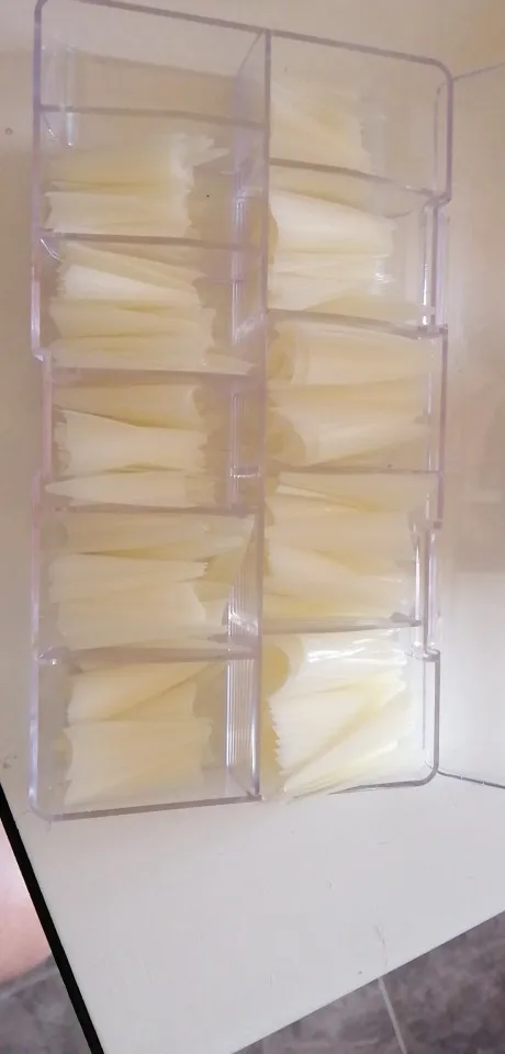 Получил это примерно через месяц и несколько дней или недель. Упаковка была повреждена, что больше всего нравится, а не вина компании. Однако кончики для ногтей тонкие и легко сгибаются. К сожалению, это будет выкидываться в основном из-за того, что все было повреждено. Не хочу разбирать все. Они в любом случае тонкие.