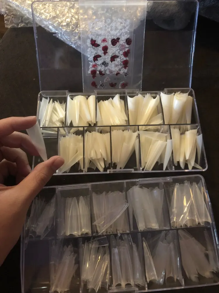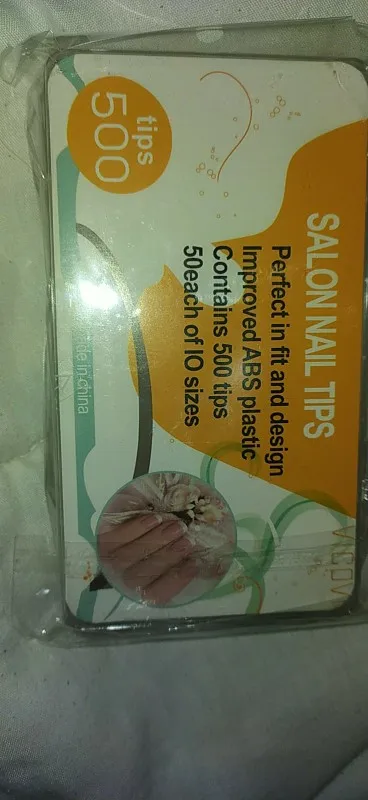 Получил товар, но наконечники не такие прочные, и они легко ломаются даже с помощью акрила, Они в порядке, но своего рода цена за качество должна быть ценой около 4-5 долларов США, учитывая качество, а также то, что коробка не нажимается близко, поэтому вы должны быть осторожны при получении или обработка, потому что все ваши советы могут упасть, потому что коробка не Закрытые, также размеры наконечников действительно маленькие, я думаю, что они подходят детям и взрослым подросткам или в зависимости от размера рук клиента, но не для тех, кто носит средний или более размер рук, они очень хрупкие и трудно прилипают к ногтевой кровати. Доставка была около 7 недель в Канаду. Я не буду покупать снова, так как не буду использовать их, чтобы они сидеть в мусорном ящике. Тратьте деньги, покупайте, если вы используете его для детей или людей с маленькими руками, это может работать.