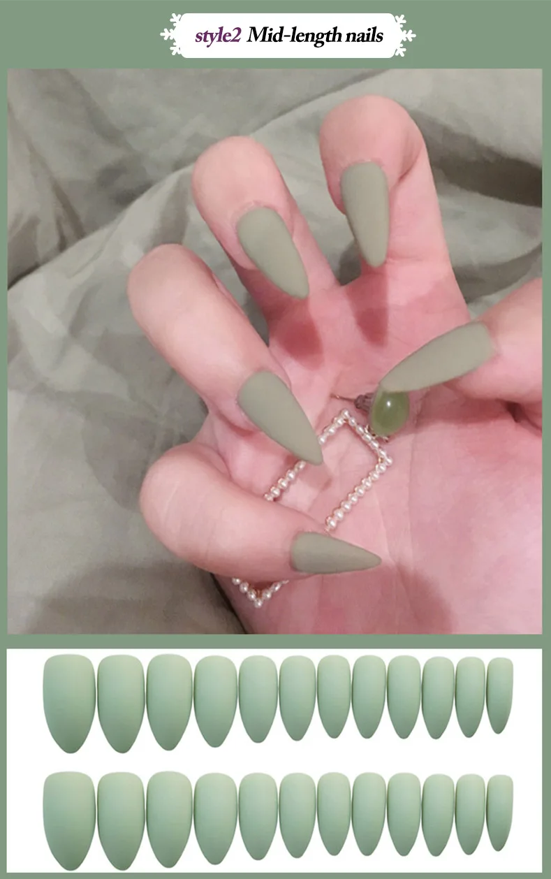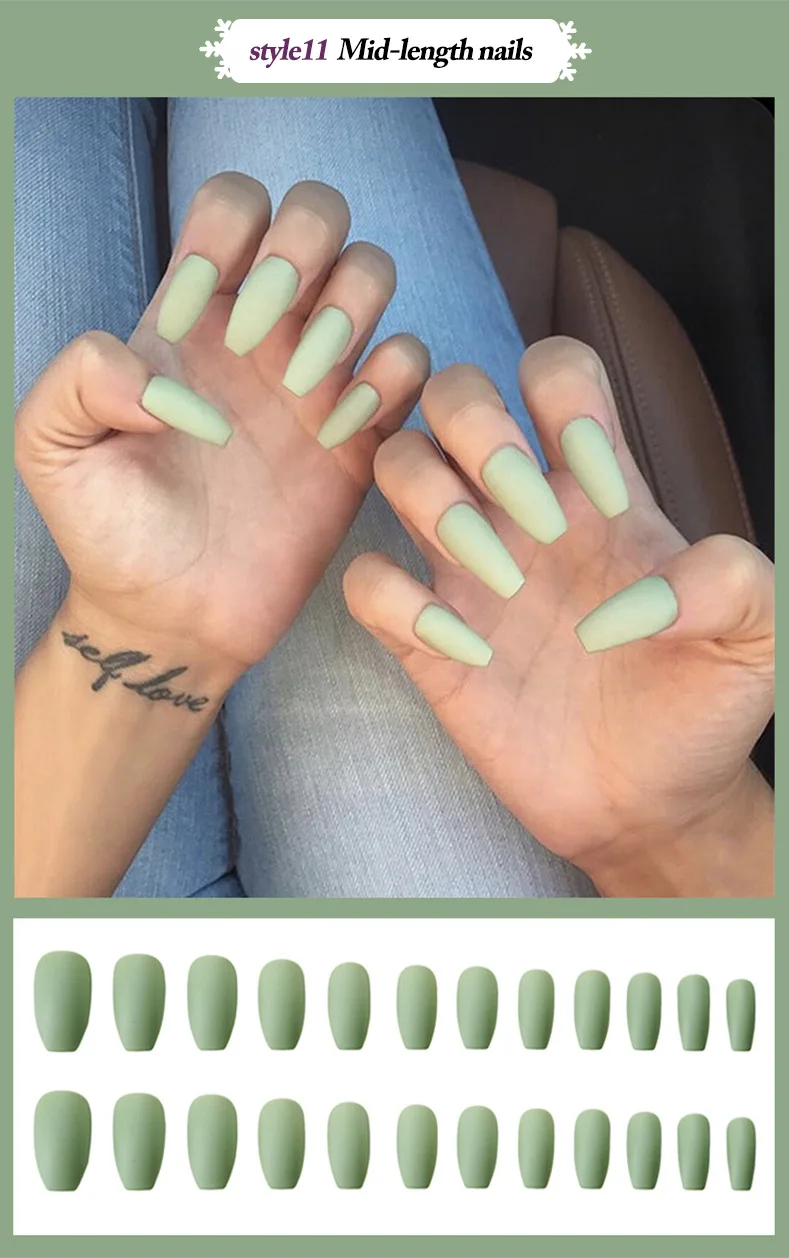 Ногти супер! Размер на любые пальчики. Смотрятся как настоящие. Клей прочный. Покупала для дочери 15 лет. Она сама справилась с маникюром.