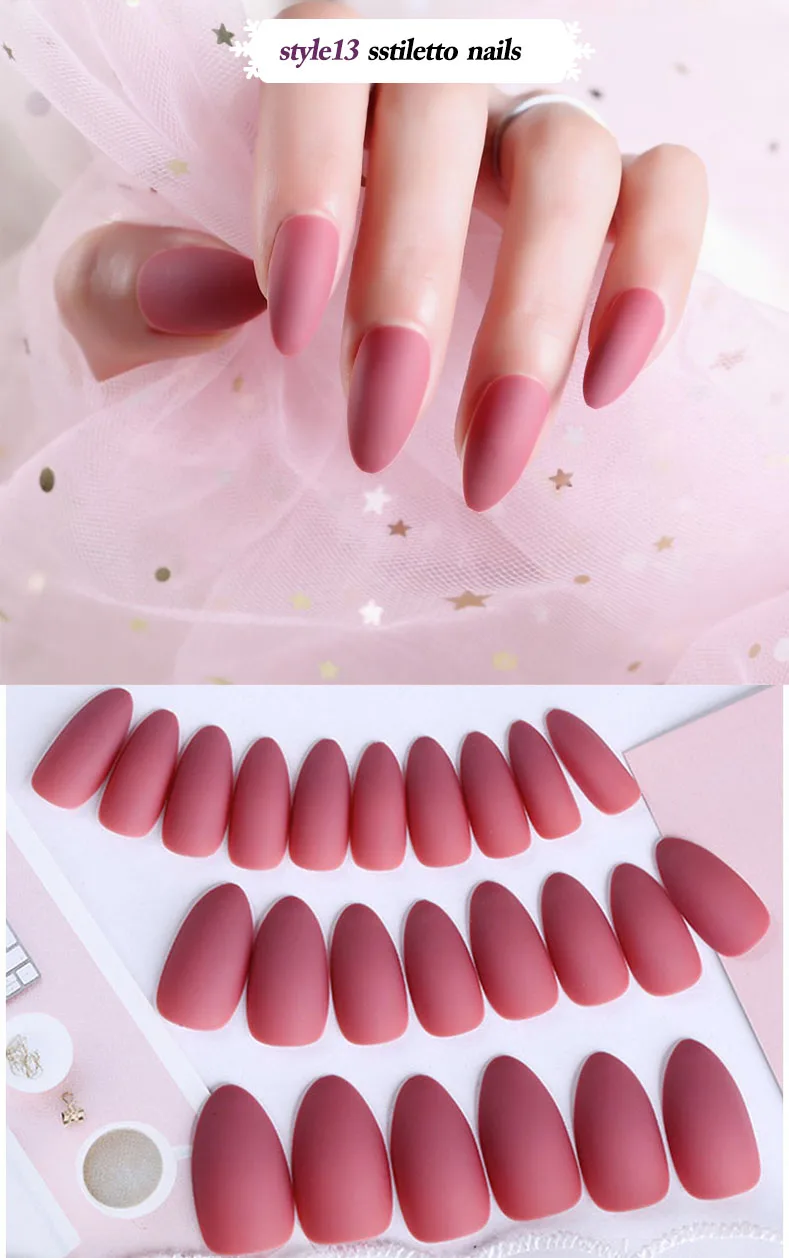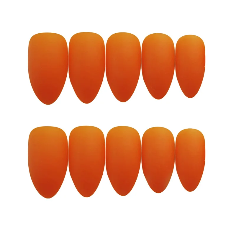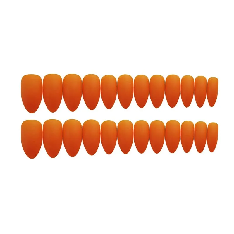 Накладные ногти с клеем, 24 шт., заостренные, яркие, оранжевые, матовые, накладные ногти-стилеты ногтей