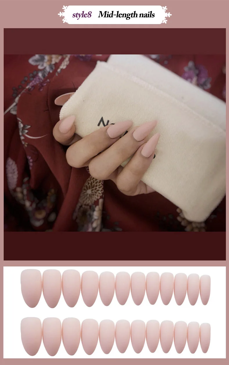 Красивые ногти, пришли быстро. Не стала сажать на клей, потому что это точно не для меня, поэтому купила к ним дополнительно силиконовые стикеры. Цвет приятный, нежный. Обязательно закажу ещё.