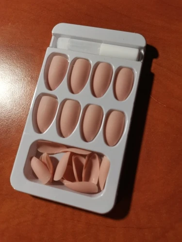 супер ногти, подошли моим пальцам довольно не стандартной формы. если не приглядываться похожи на настоящие. очень хороший клей, хватило на две руки.