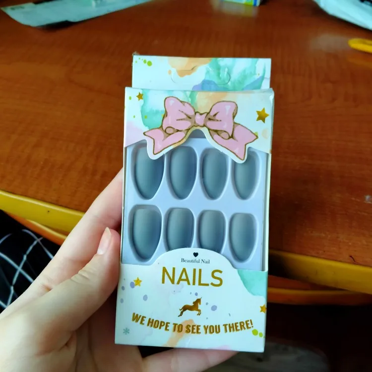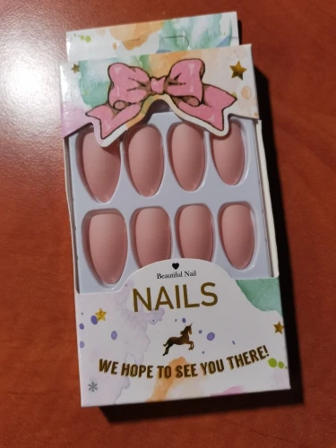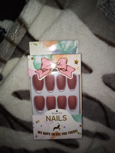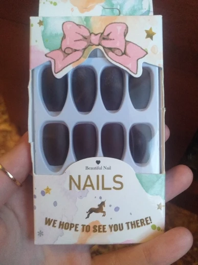 Превзошёл мои ожидания,товар пришёл чуть больше двух недель,цвет подошёл, приехал целым , не одной вмятенки , сидит прекрасно(но ещё не клеила , а просто приложила) покрытие матовое , в целом не похож на накладной, в комплекте есть клей (пока не проверяла на прочность) , не очень нравится форма , но наверное его можно подточить как нужно, у каждого ногтя на внутренней стороне есть номерок , так что невозможно запутаться.А так рекомендую) За такую цену очень идеально)))
