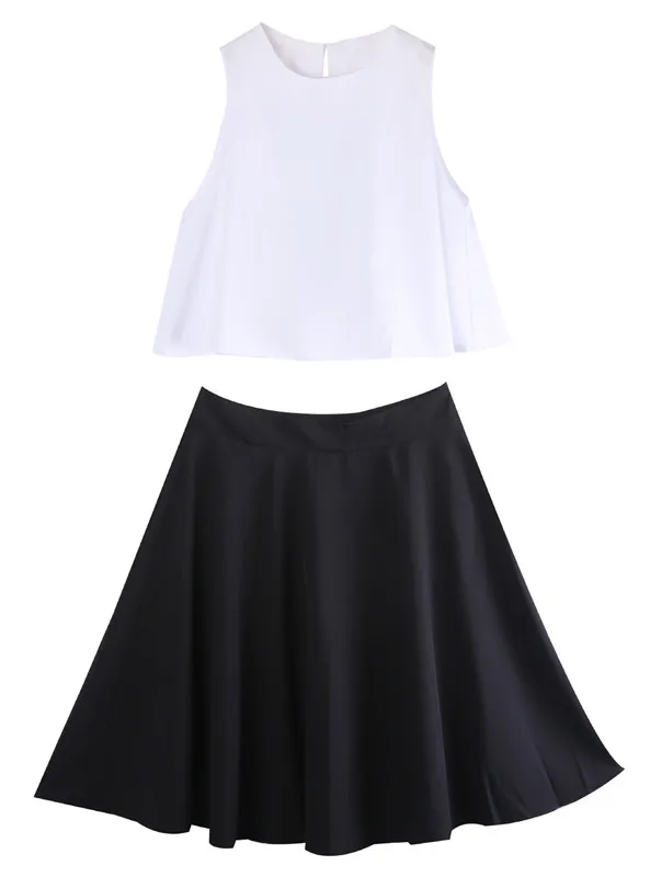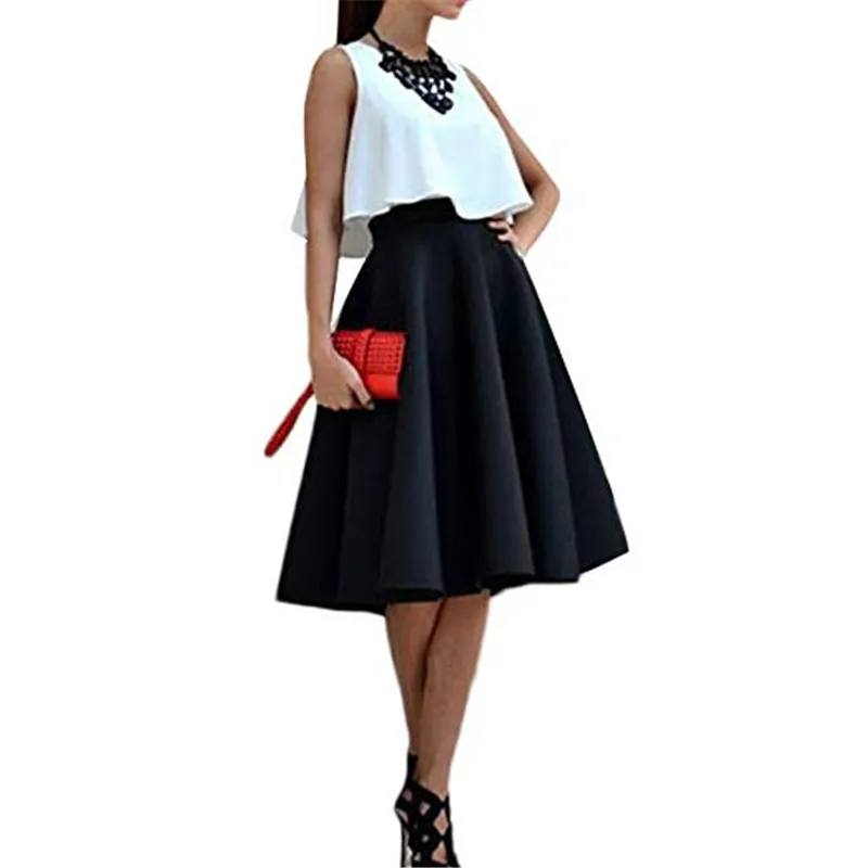 Женский винтажный комплект из 2 предметов, однотонная блузка без рукавов и юбка