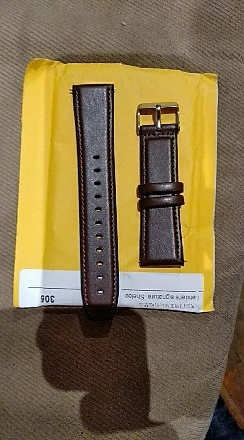 По первому впечатлению, ремешок качественный. Брал как запасной к оригиналу, так как почти не снимаю часы и вероятность ушатать ремешок большая. Новый немножко уже оригинала. Застёжка светлая. Брал по темнее, но, субъективно, светло коричневый, смотрится солиднее. Хотя будет больше подвержен загрязнению. За такой ценник считаю отличным вариантом. Всегда можно заказать новый. На фотке часы уже с новым ремешком.