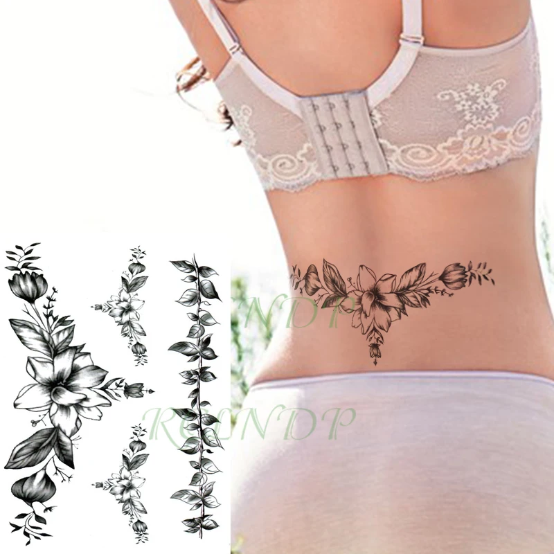 Водостойкая Временная тату-наклейка, старая мода, цветок, лист, сексуальная искусственная тату для груди, груди, спины, живота, искусственная татуировка для женщин и девочек
