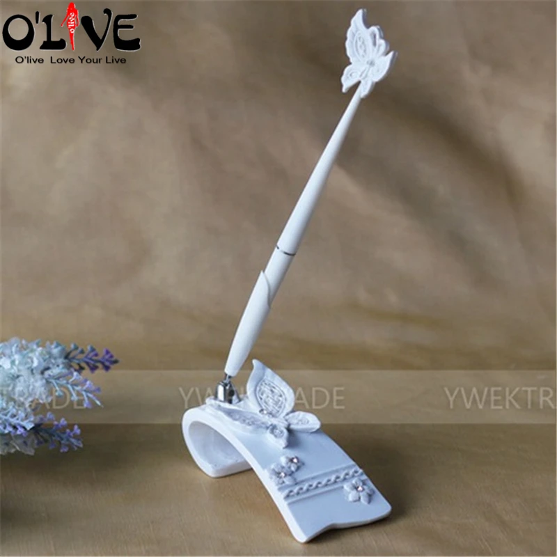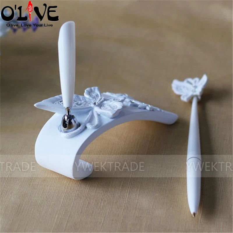 Ручка и держатель ручки набор для подписей, белая каучуковая ручка для свадьбы, гостевая книга для подписей, шариковая ручка для невесты