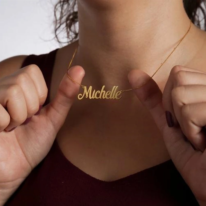 Ожерелье золотого цвета с именем, персонализированное женское и муж...