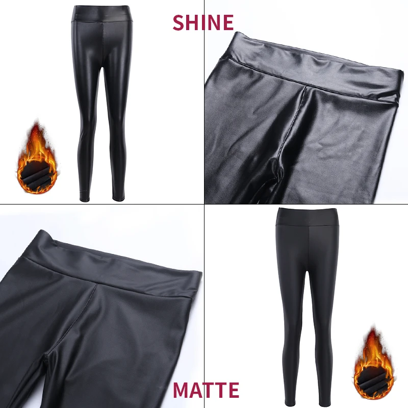 Леггинсы InstaHot из искусственной кожи, облегающие, блестящие, матовые, утепленные, эластичные, для осени и зимы