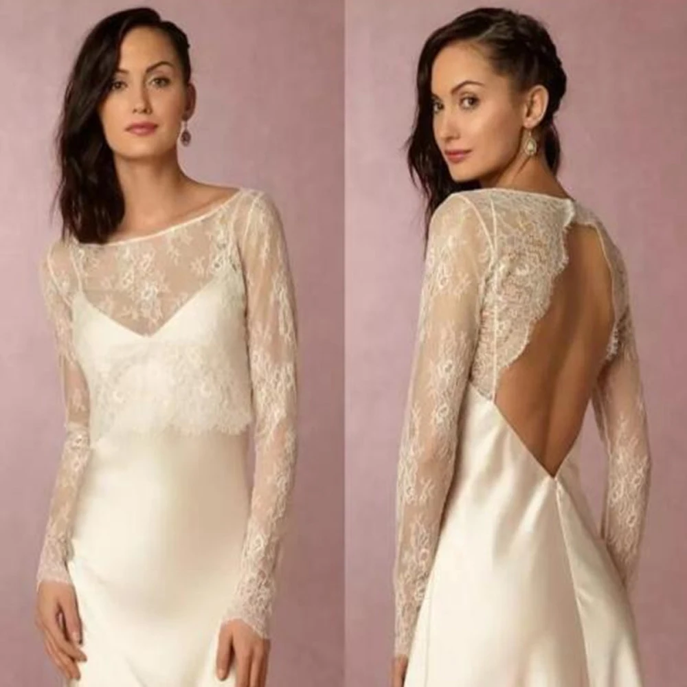 Сексуальные с открытой спиной белые свадебные куртки цвета слоновой кости с глубоким вырезом и длинным рукавом Кружевное свадебное болеро на заказ
